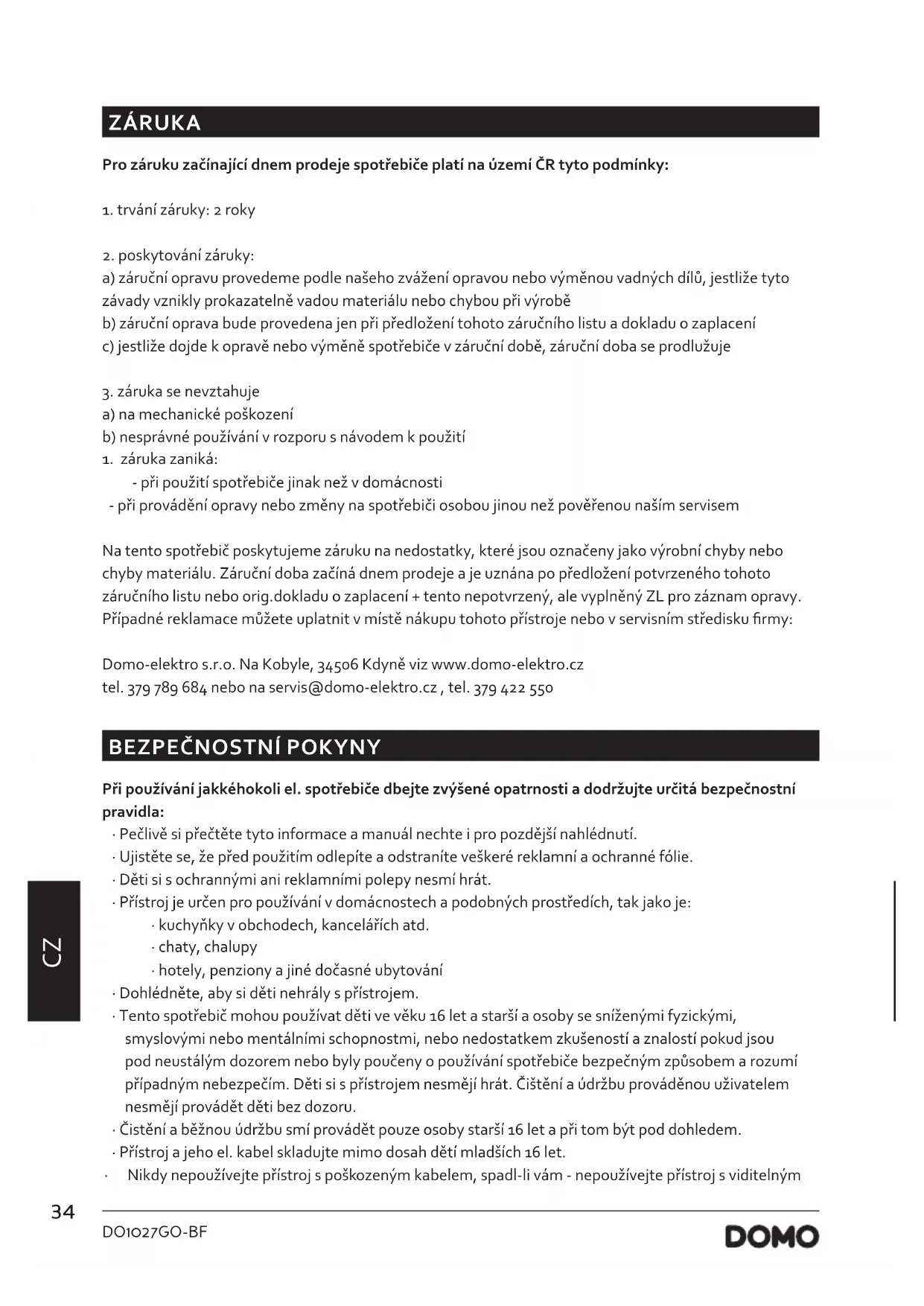 NÁVOD K OBSLUZE DO1027GO DOMO