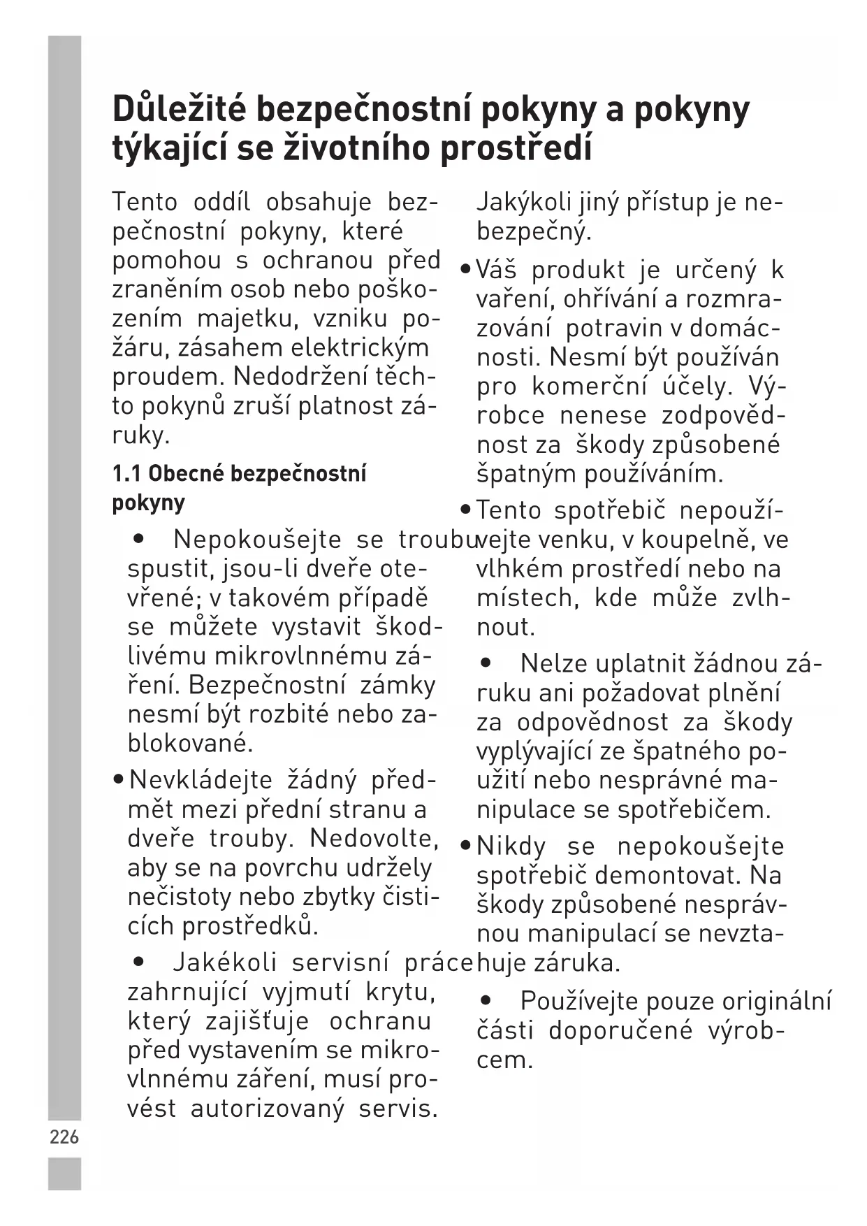 - Nelze uplatnit žádnou zá- ruku ani požadovat plnění za odpovědnost za škody vyplývající ze špatného po- užití nebo nesprávné ma- nipulace se spotřebičem.
