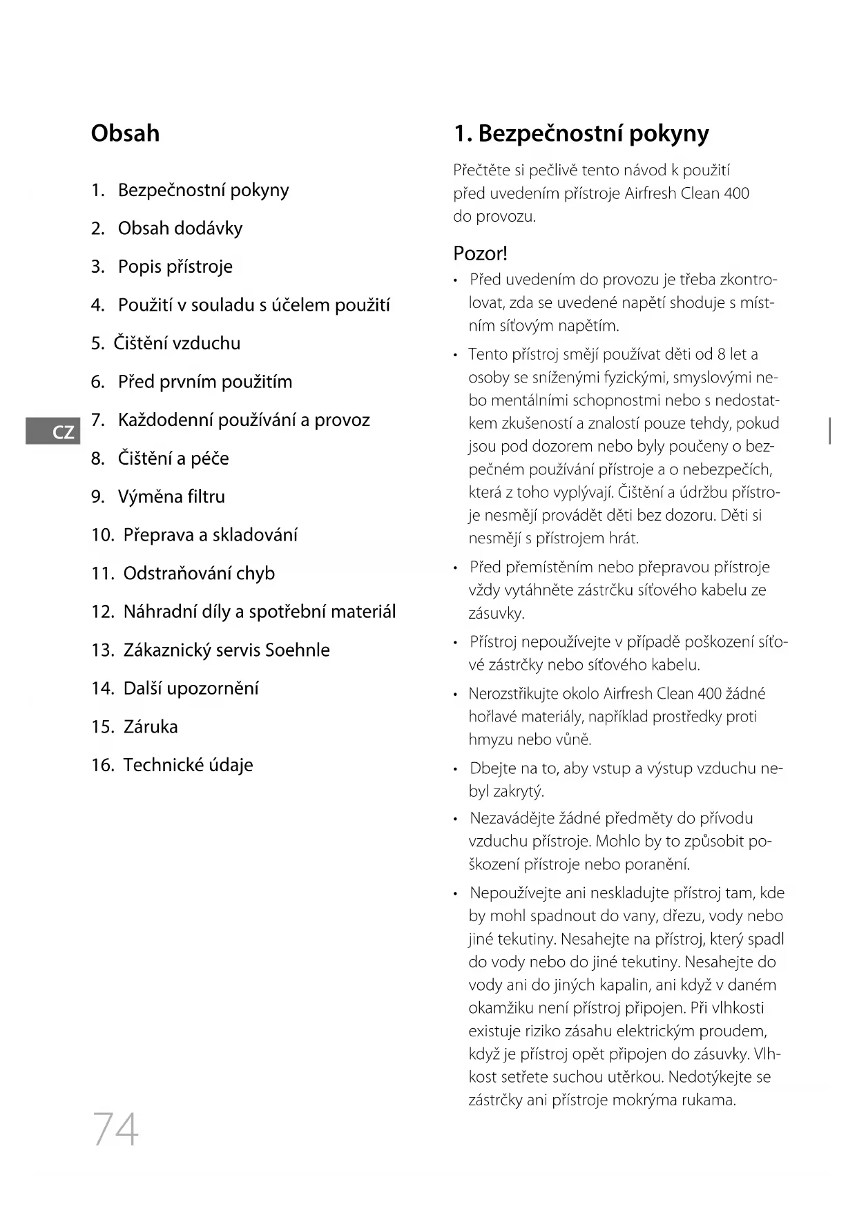 NÁVOD K OBSLUZE Airfresh Clean 400 SOEHNLE