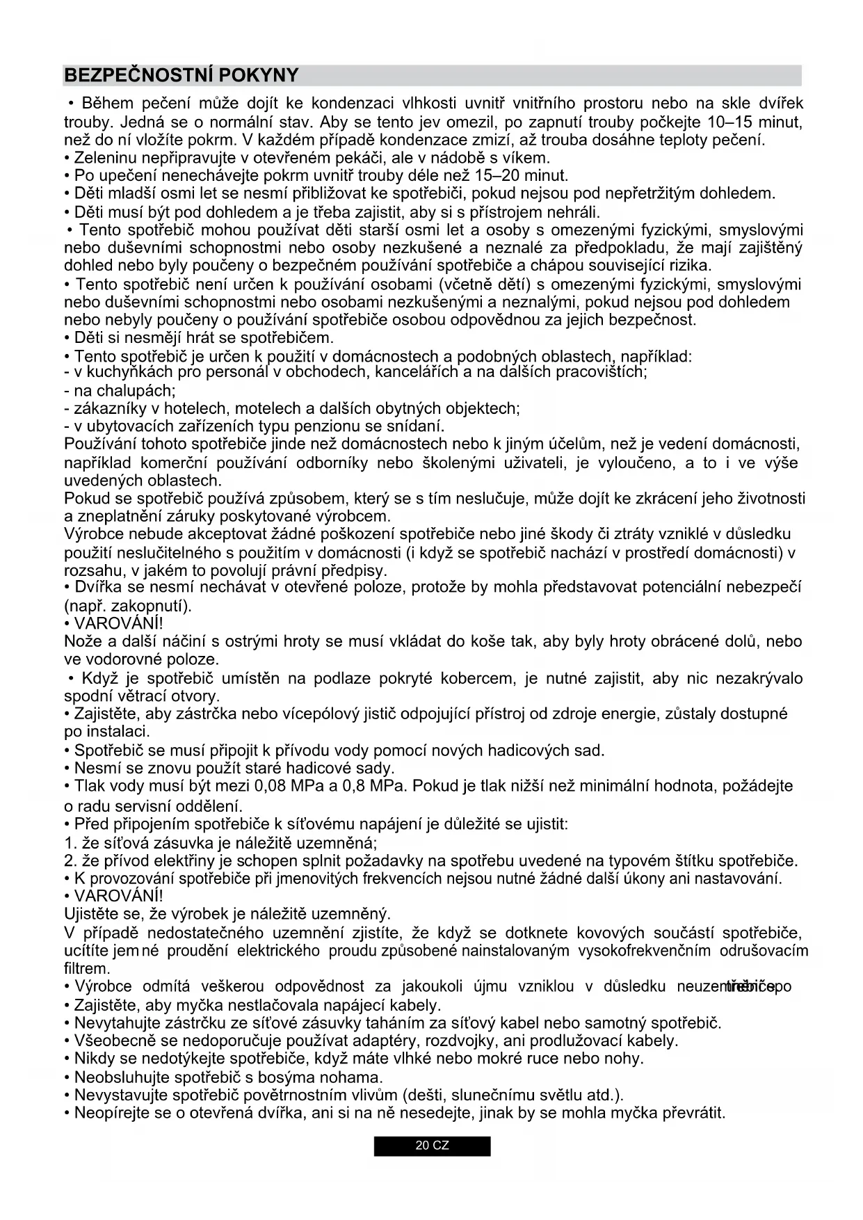 - Neopírejte se o otevřená dvířka, ani si na ně nesedejte, jinak by se mohla myčka převrátit.21 CZ