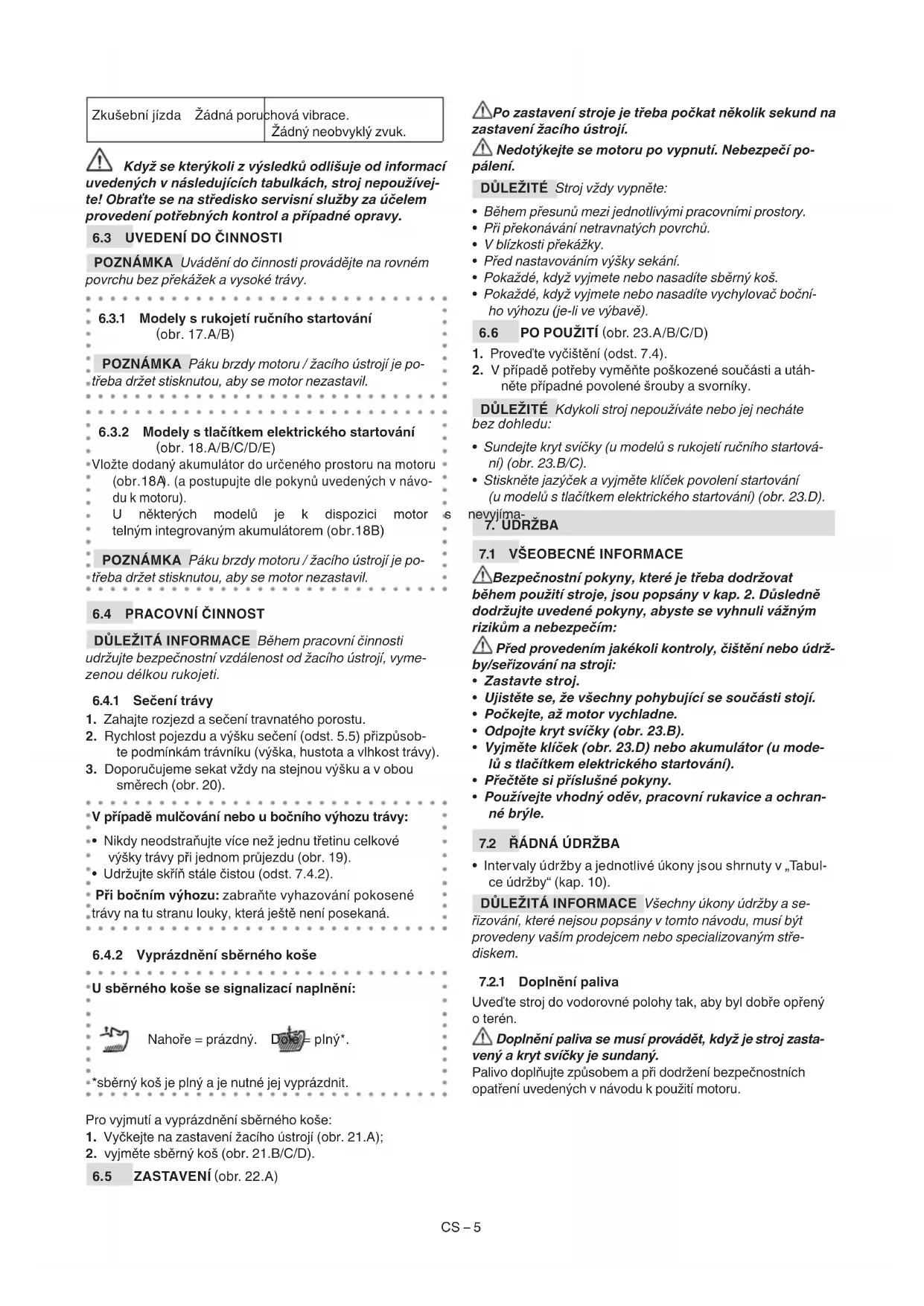 DŮLEŽITÉ Pro pokyny týkající se motoru a akumulátoru (je-li ve výbavě) viz příslušné návody.