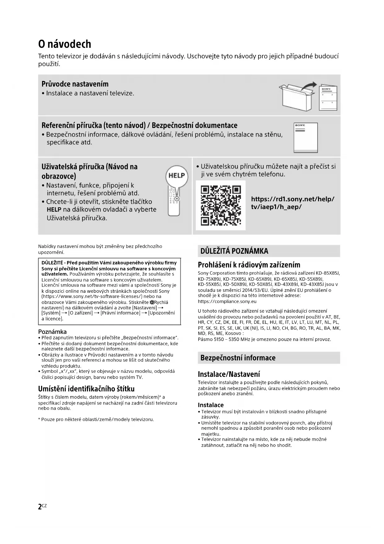 Stáhněte si návod pro váš Televize ve formátu PDF zdarma! Najděte svůj návod KD75X85TJ - SONY a vezměte svůj elektronický přístroj zpět do rukou. Na této stránce jsou zveřejněny všechny dokumenty potřebné k používání vašeho zařízení. KD75X85TJ značky SONY.