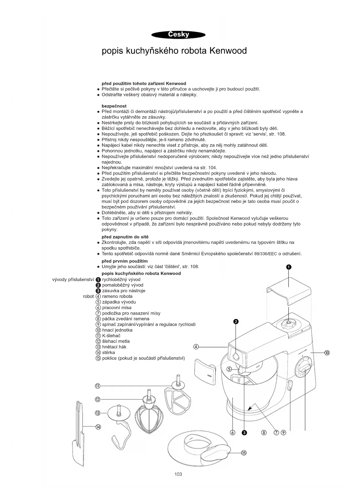 - lehací metla hnêtací hák stêrka poklice (pokud je součástí příslušenství) popis kuchyñského robota Kenwood