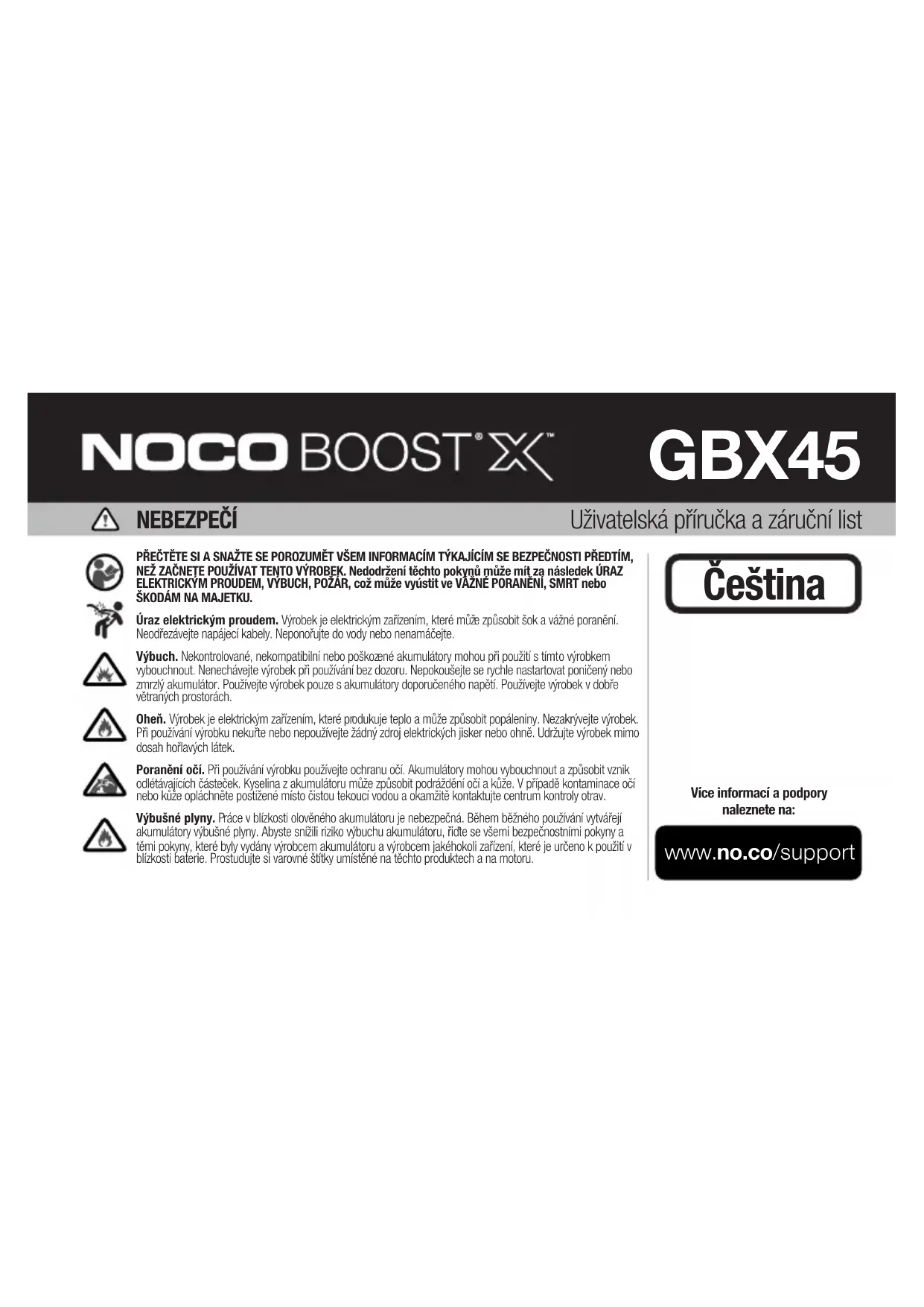 NÁVOD K OBSLUZE Boost X GBX45 NOCO