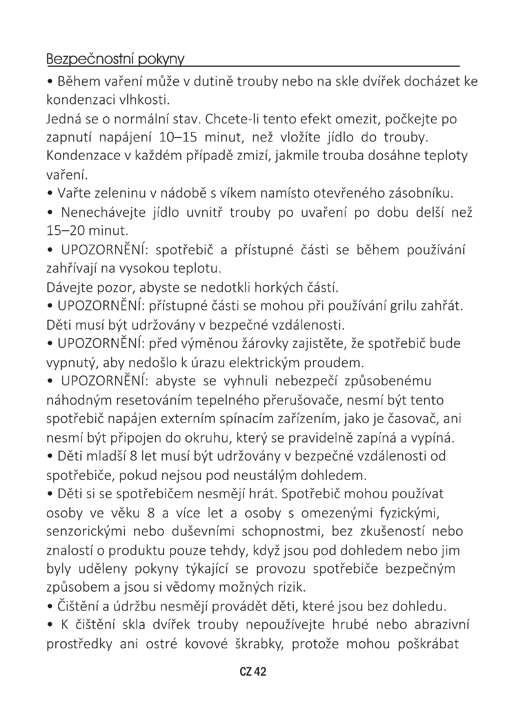 - K čištění skla dvířek trouby nepoužívejte hrubé nebo abrazivní prostředky ani ostré kovové škrabky, protože mohou poškrábat CZ 42povrch a způsobit rozbití skla.
