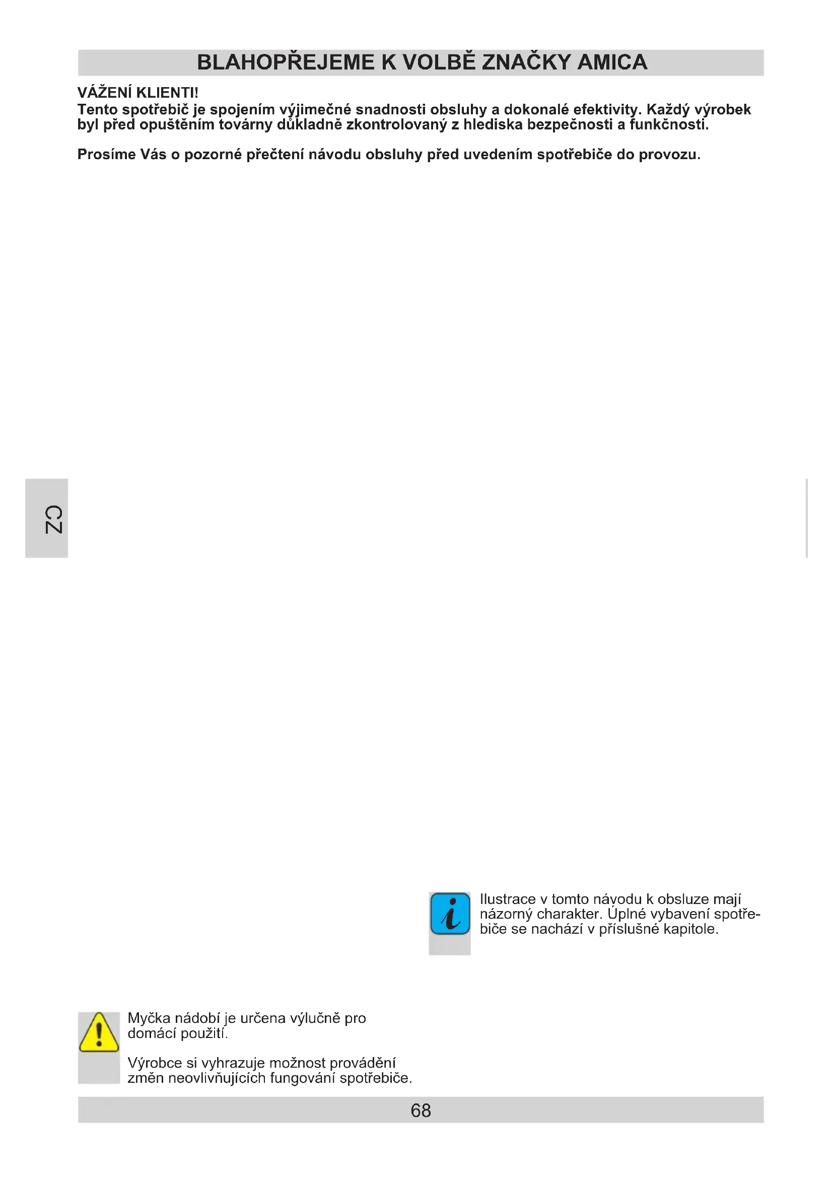 Ilustrace v tomto návodu k obsluze mají názorný charakter. Úplné vybavení spotře- biče se nachází v příslušné kapitole. Tentospotřebičjespojenímvýjimečnésnadnostiobsluhyadokonaléefektivity.Každývýrobek bylpředopuštěnímtovárnydůkladnězkontrolovanýzhlediskabezpečnostiafunkčnosti. ProsímeVásopozornépřečtenínávoduobsluhypředuvedenímspotřebičedoprovozu. VÁŽENÍKLIENTI!