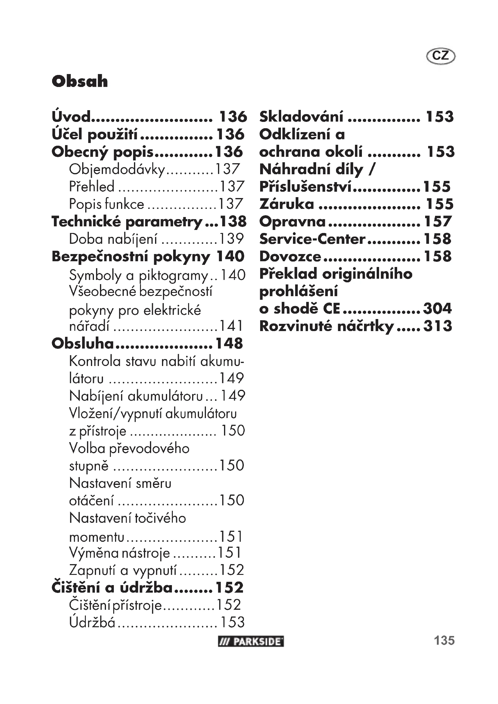 - Čištěníaúdržba p. 152