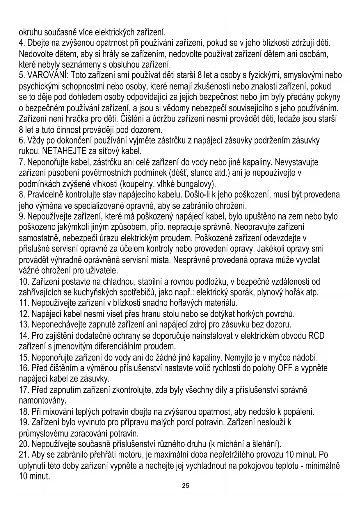18. Při mixování teplých potravin dbejte na zvýšenou opatrnost, aby nedošlo k popálení.