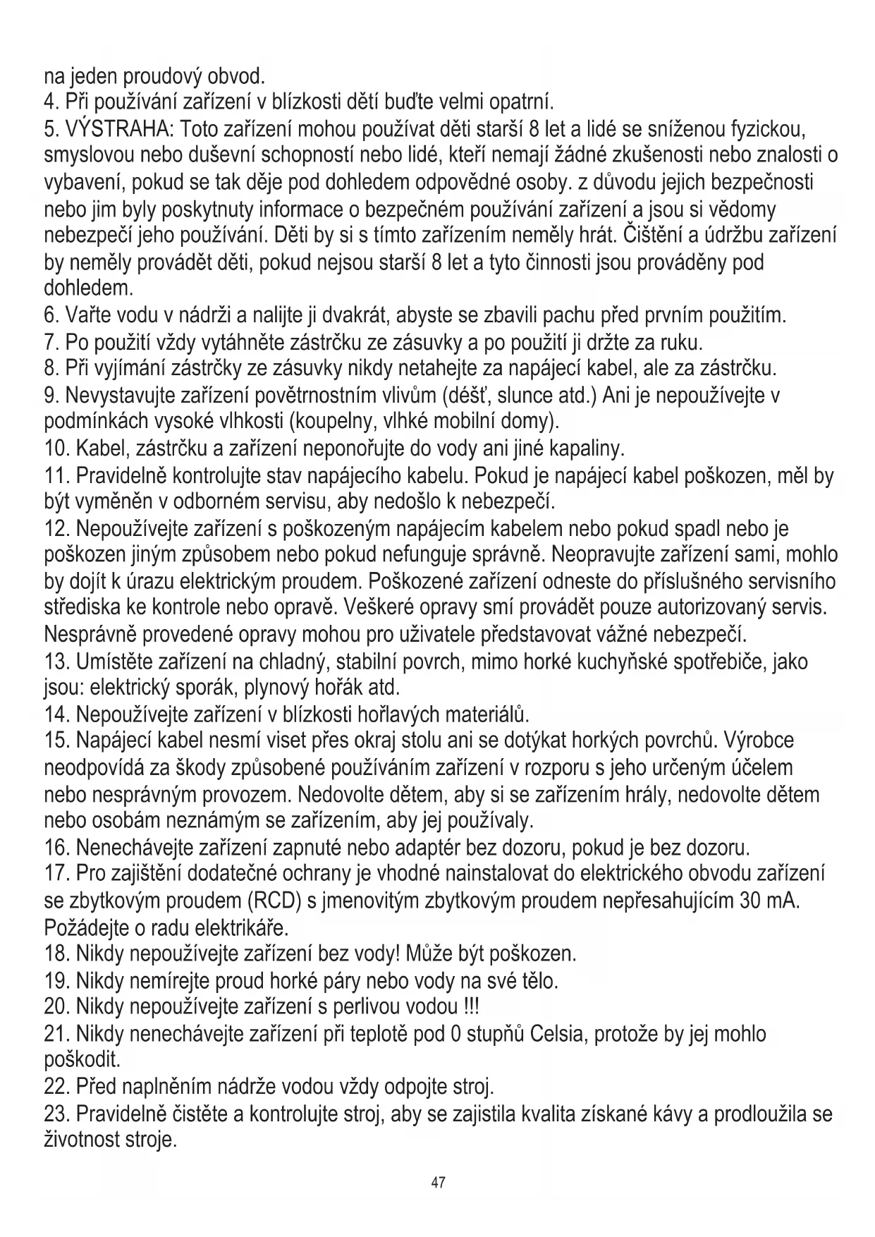 zvýšení provozní bezpečnosti by nemělo být současně připojeno více elektrických zařízení (CZ) ČESKY47 na jeden proudový obvod.