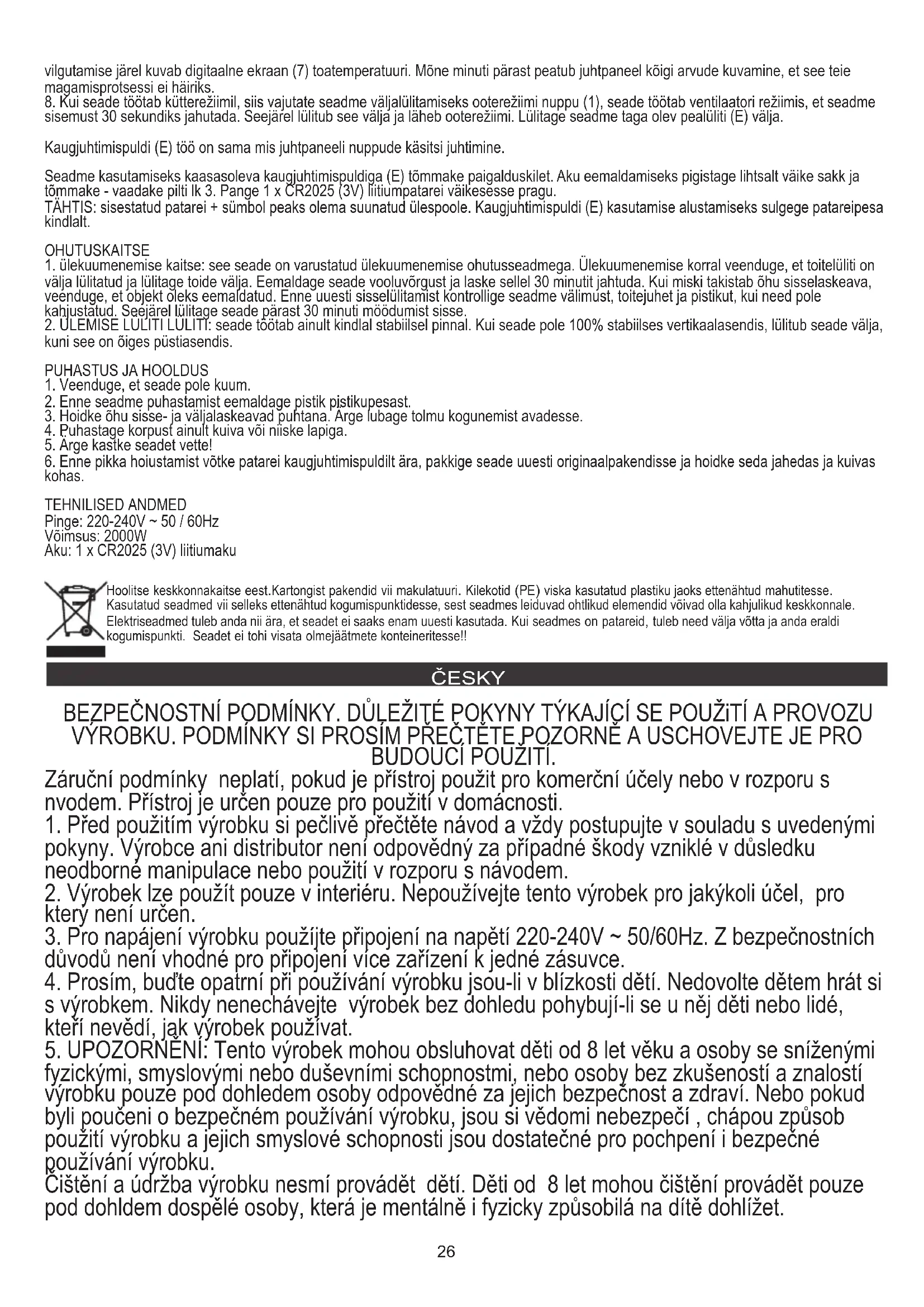 25. Nepoužívejte tento ohřívač v bezprostřední blízkosti vany, sprchy nebo bazénu
