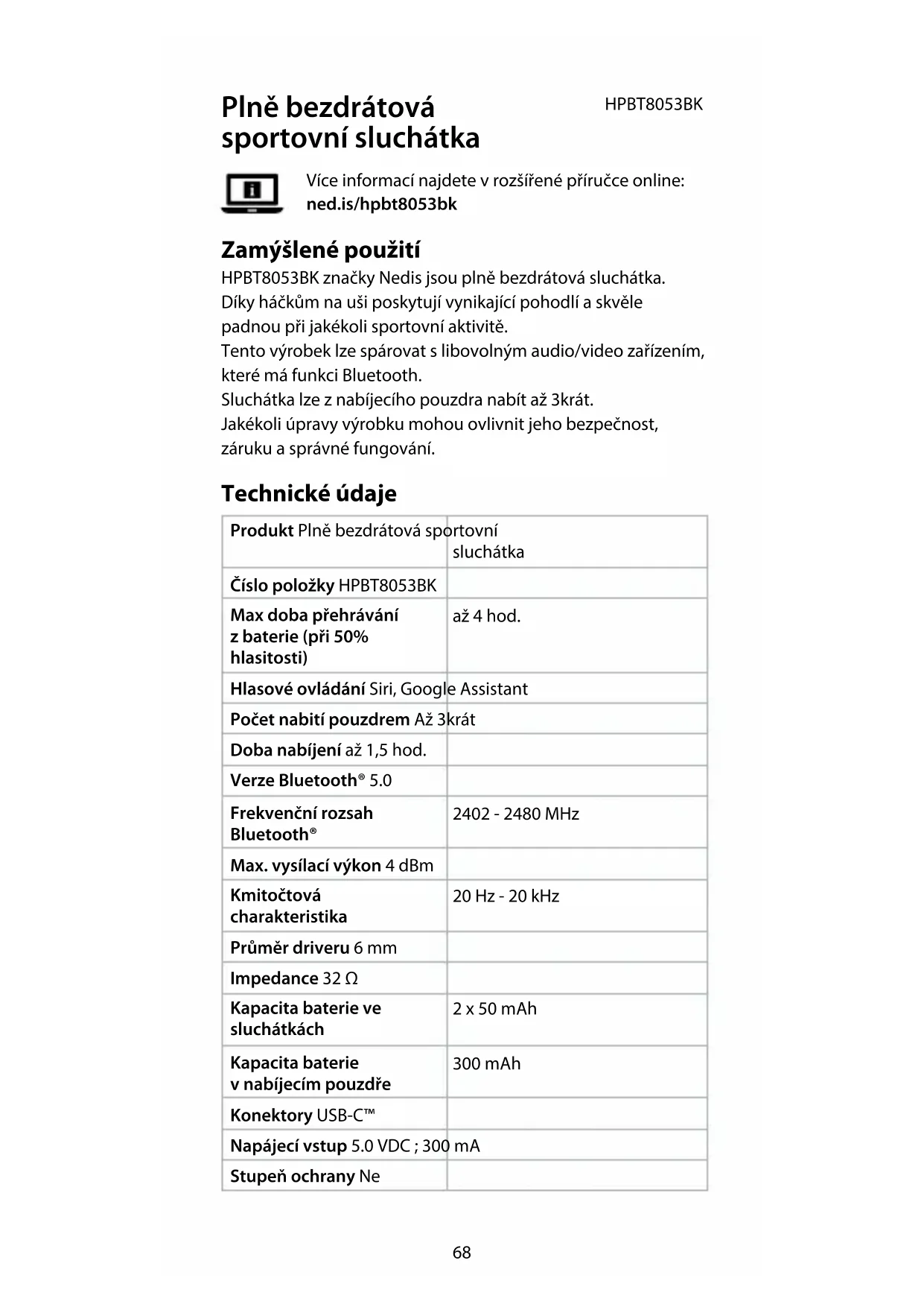 Najděte návod k zařízení zdarma HPBT8053BK NEDIS ve formátu PDF.