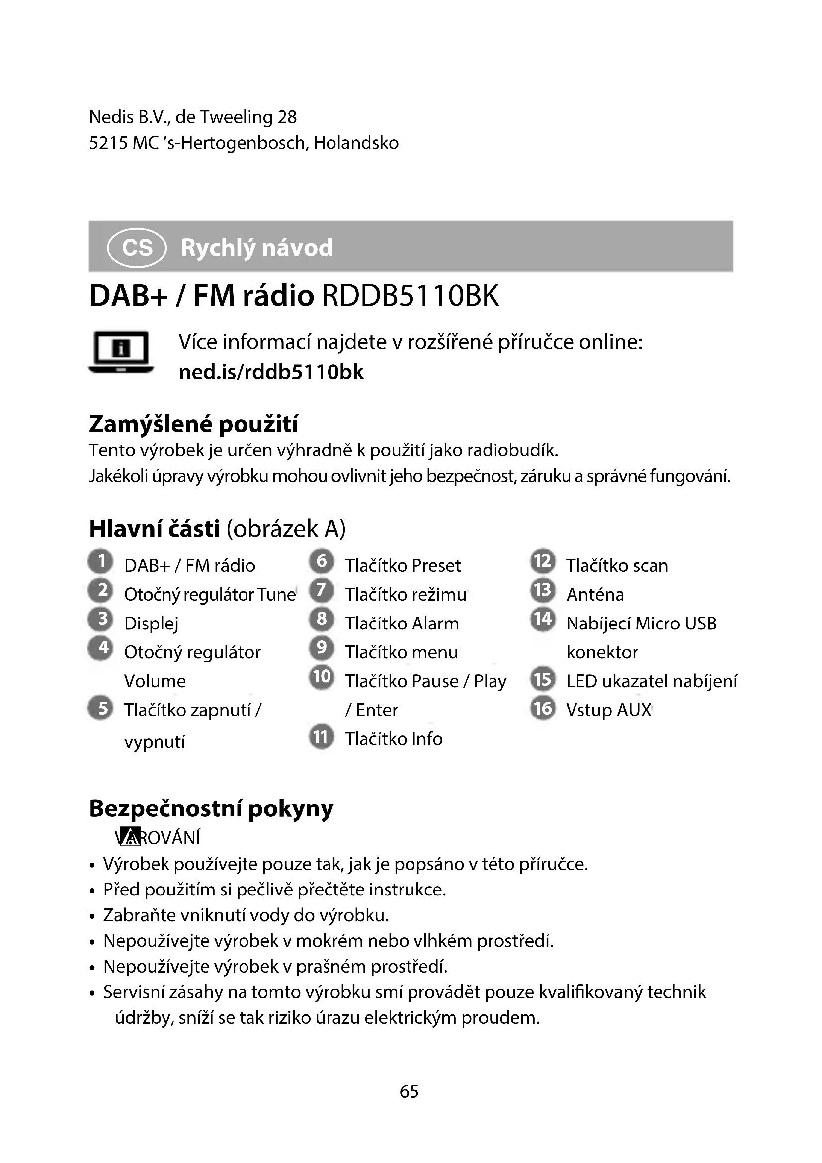 RDDB5110BK - Radio NEDIS - Bezplatný návod k obsluze