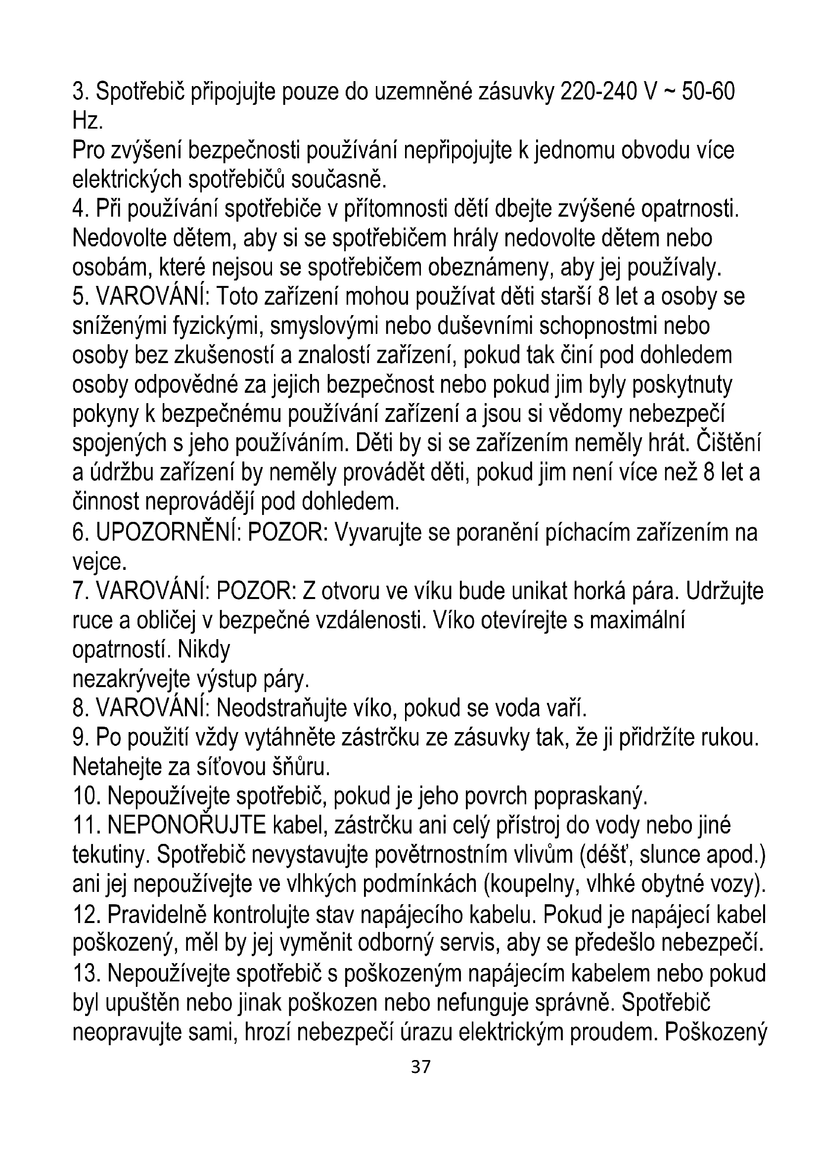 pokyny v něm uvedené. Výrobce neodpovídá za škody způsobené používáním spotřebiče v rozporu s jeho určením nebo nesprávnou manipulací.