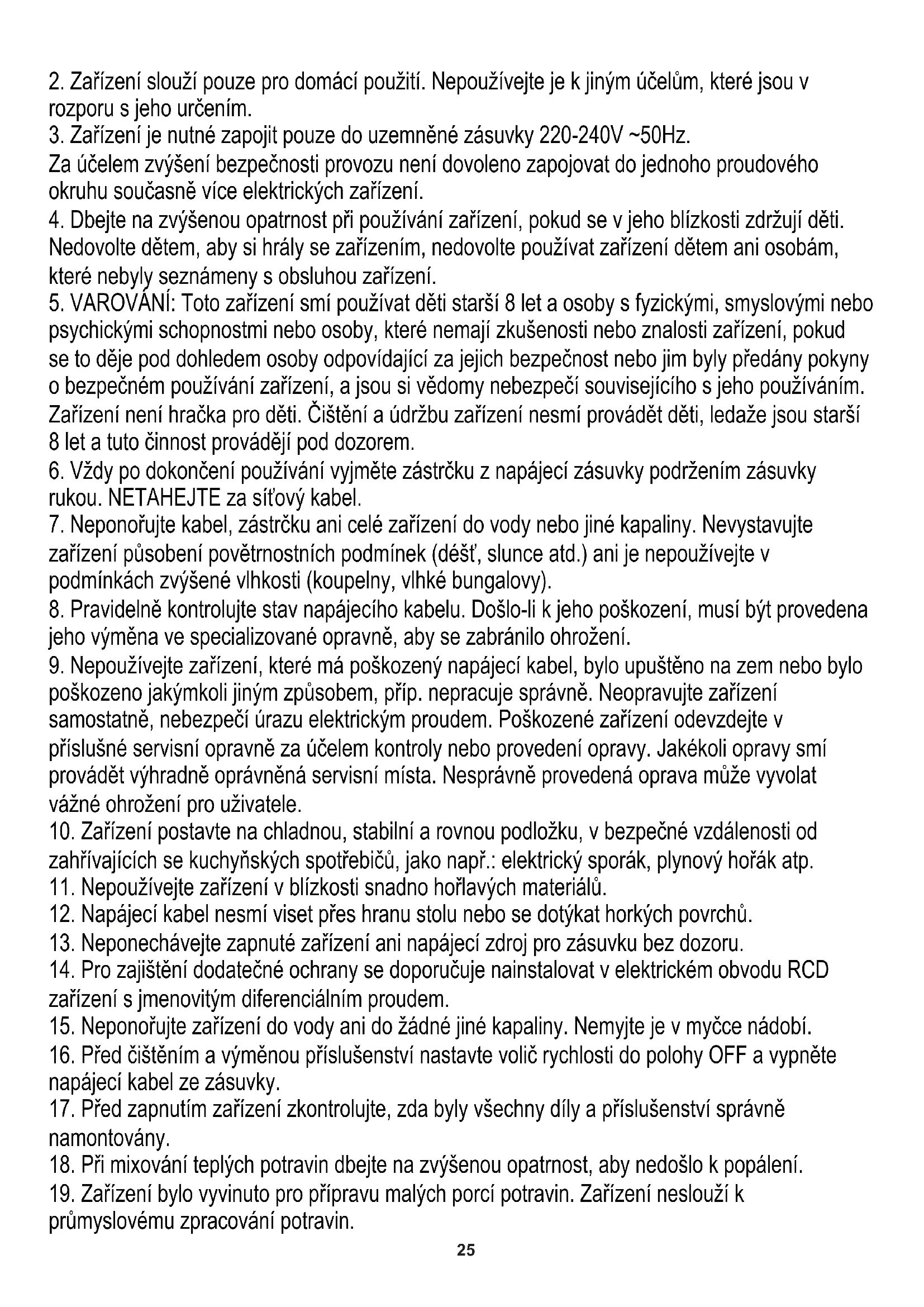 18. Při mixování teplých potravin dbejte na zvýšenou opatrnost, aby nedošlo k popálení.