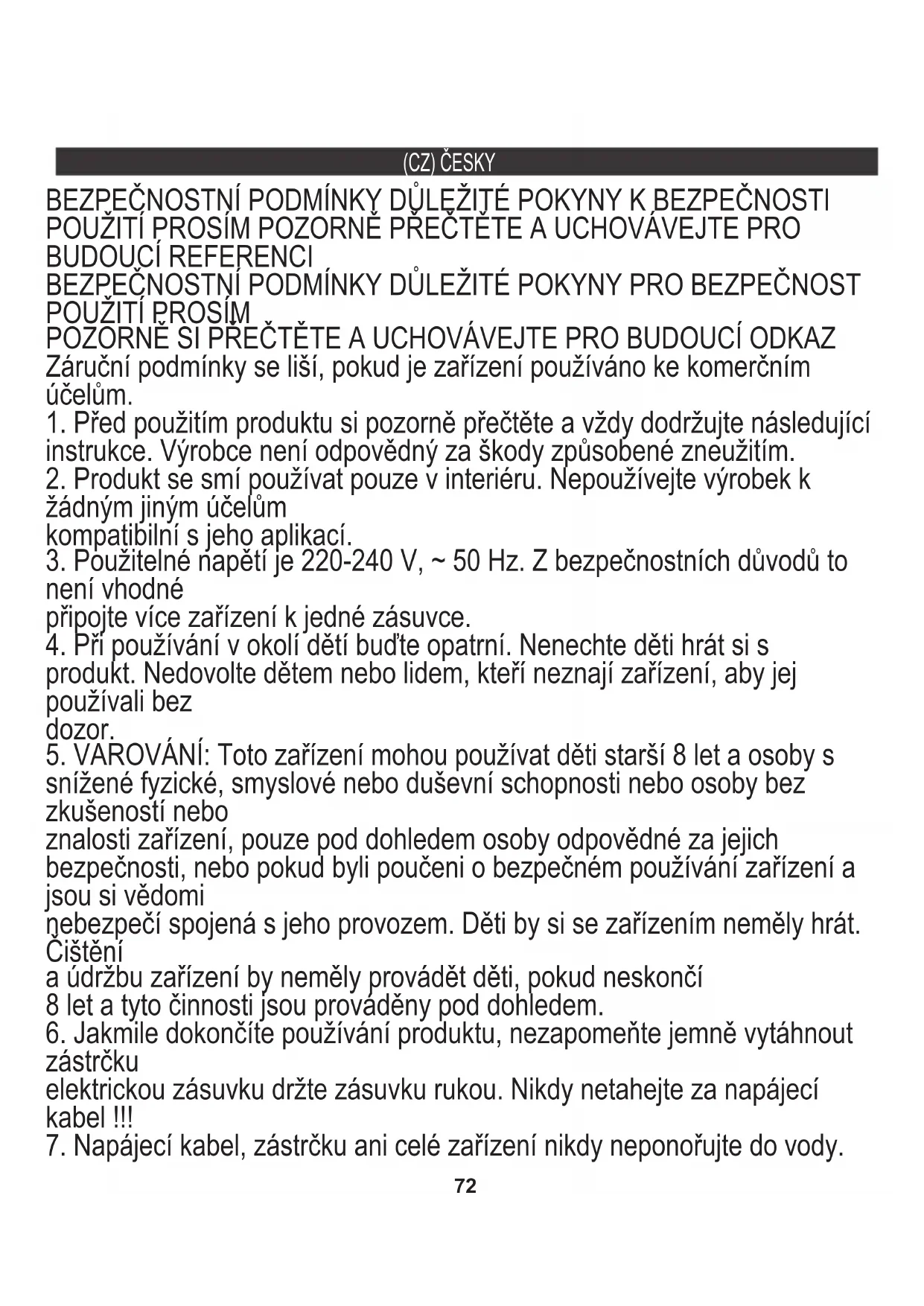 30. Otevřením zařízení zničíte spotřebič a zrušíte platnost záruky.