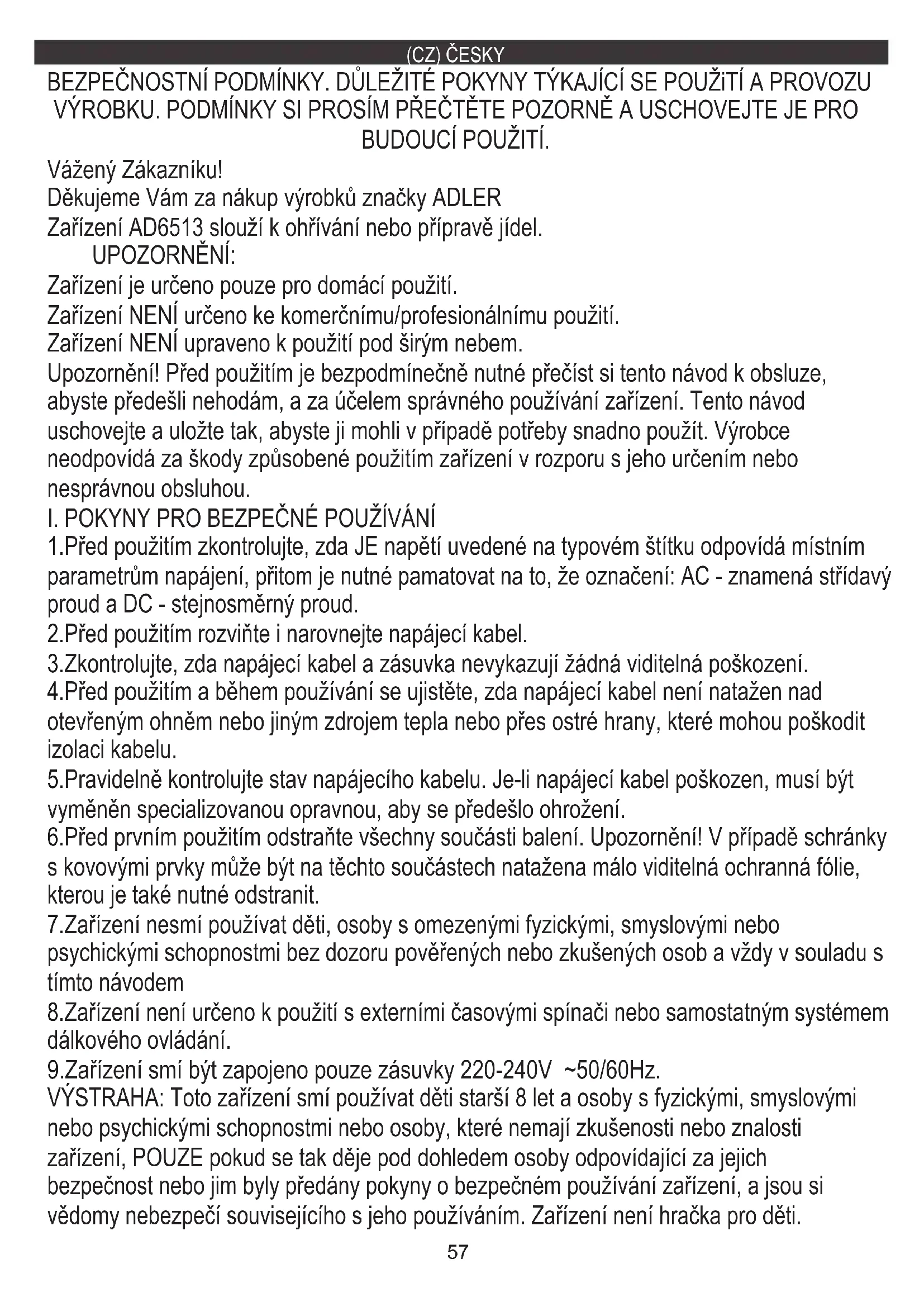 Najděte návod k zařízení zdarma AD 6513 ADLER ve formátu PDF.
