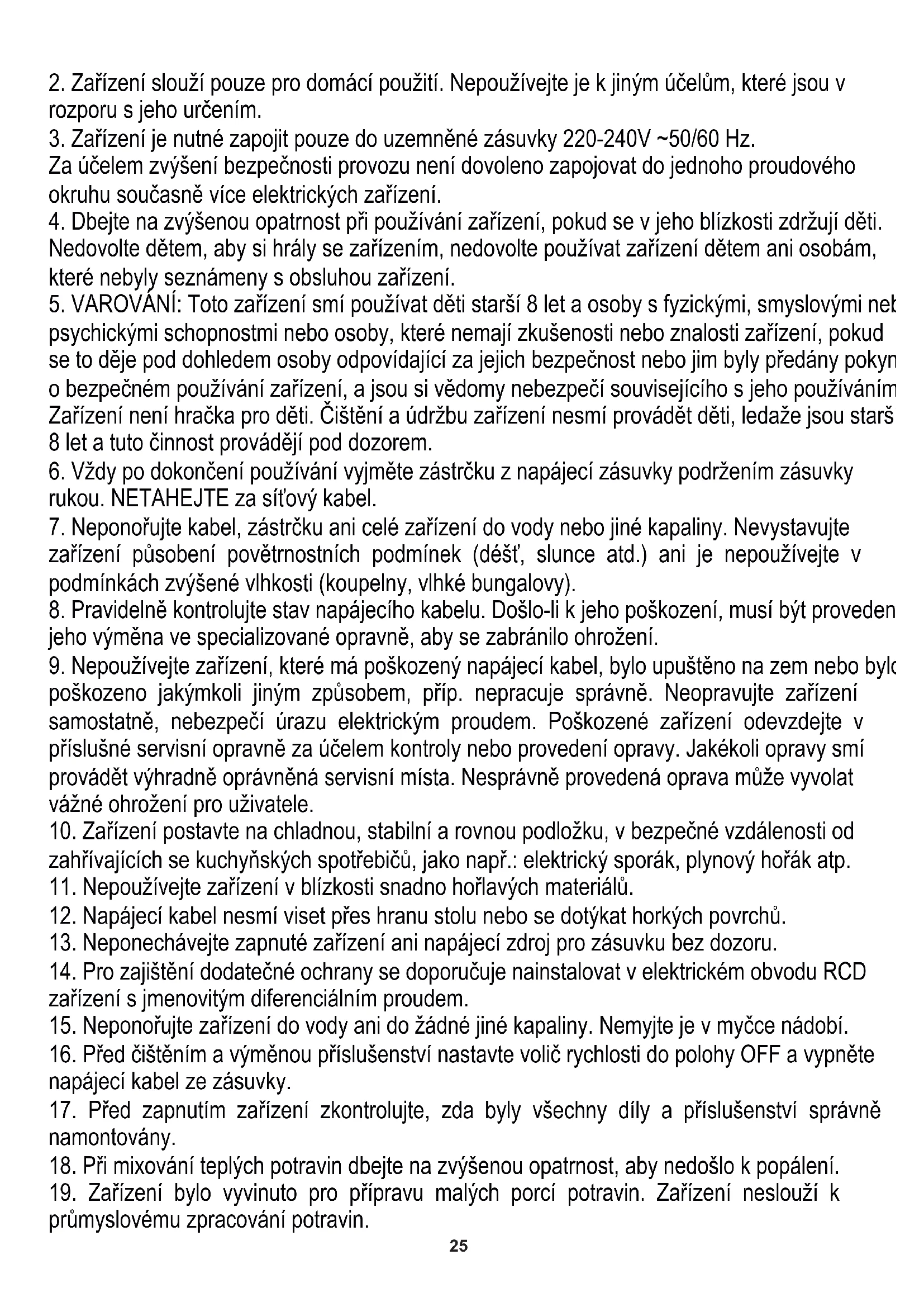 18. Při mixování teplých potravin dbejte na zvýšenou opatrnost, aby nedošlo k popálení.