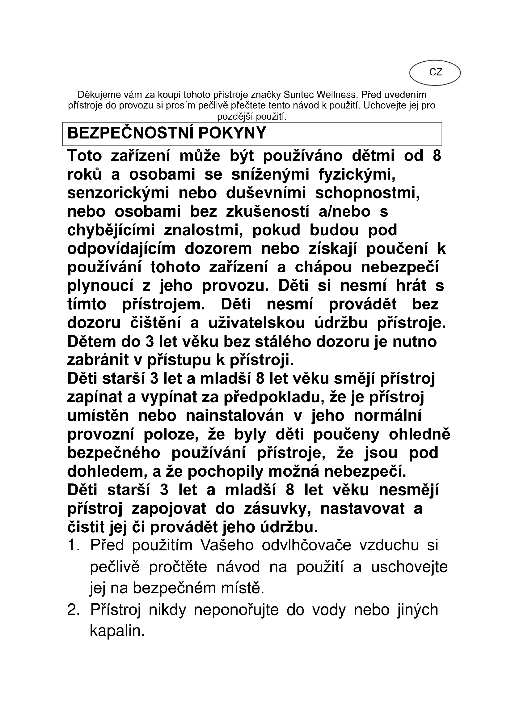 DryFix SUNTEC WELLNESS GMBH / HOLZSTRASSE 2 / 40 221 DÜSSELDORF / GERMANYDěkujeme vám za koupi tohoto přístroje značky Suntec Wellness. Před uvedením přístroje do provozu si prosím pečlivě přečtete tento návod k použití. Uchovejte jej pro pozdější použití.