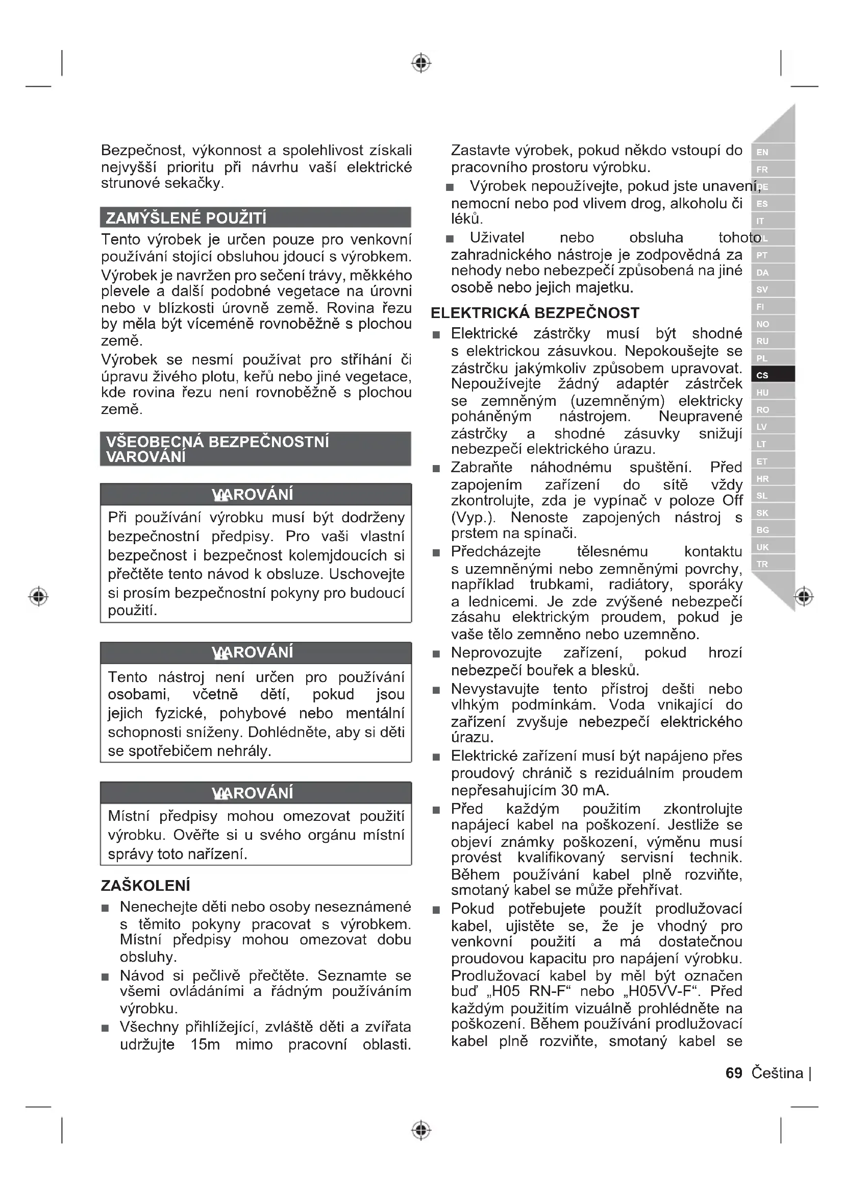 Bezpeþnost, výkonnost a spolehlivost získali nejvyšší prioritu pĜi návrhu vaší elektrické strunové sekaþky.