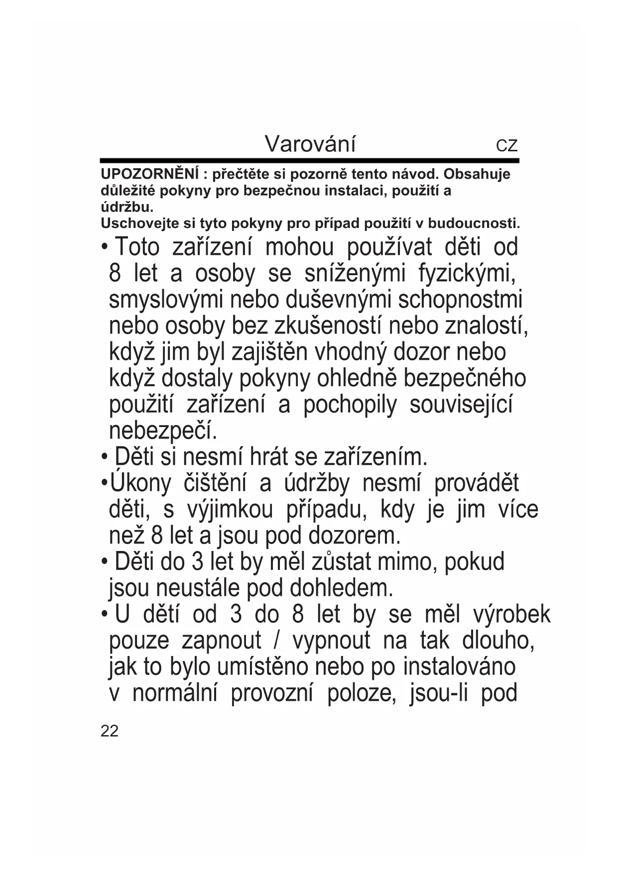 - Úkony čištění a údržby nesmí provádět děti, s výjimkou případu, kdy je jim více než 8 let a jsou pod dozorem.