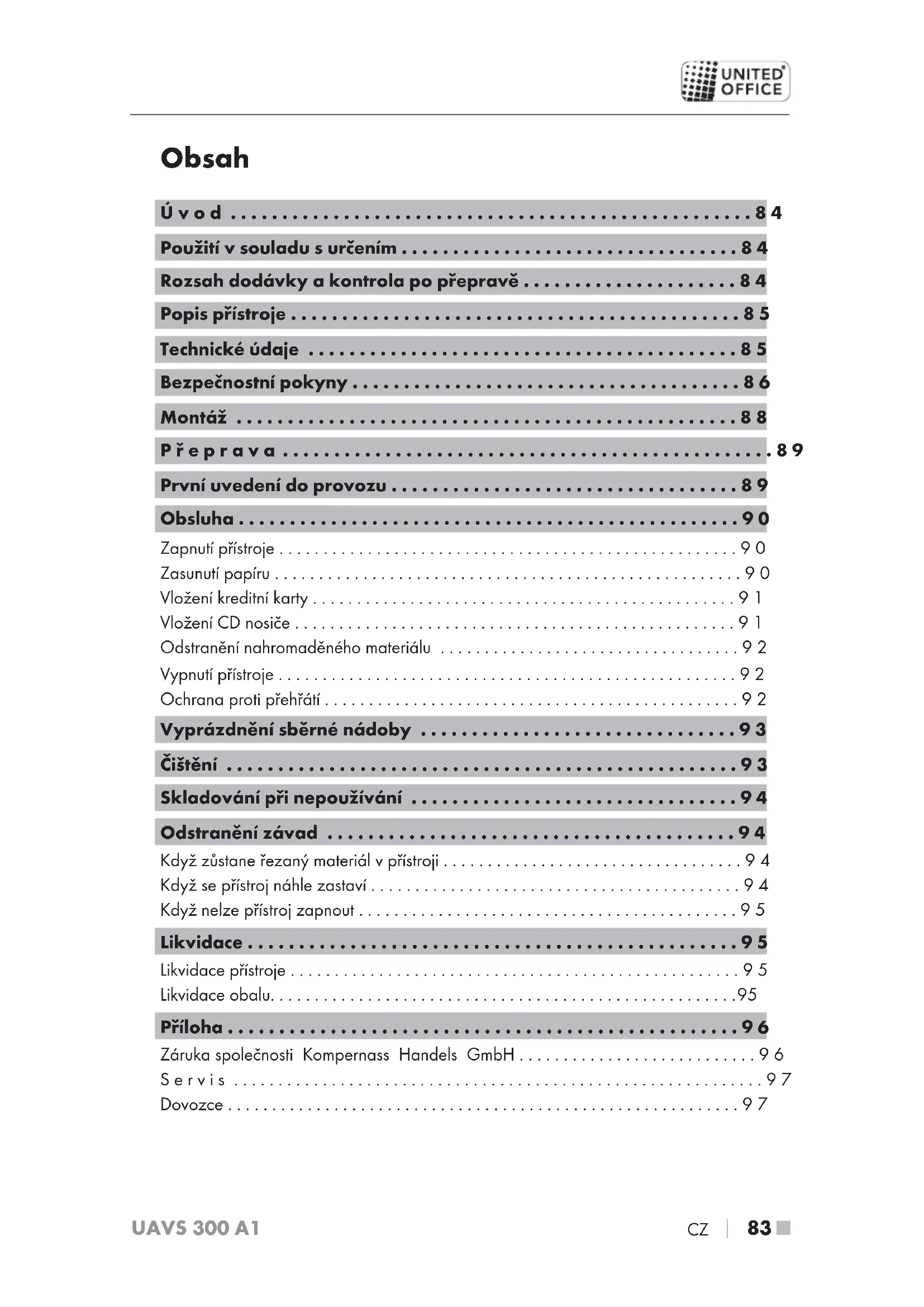 - 83 ■ UAVS 300 A1 Obsah Úvod p. 84