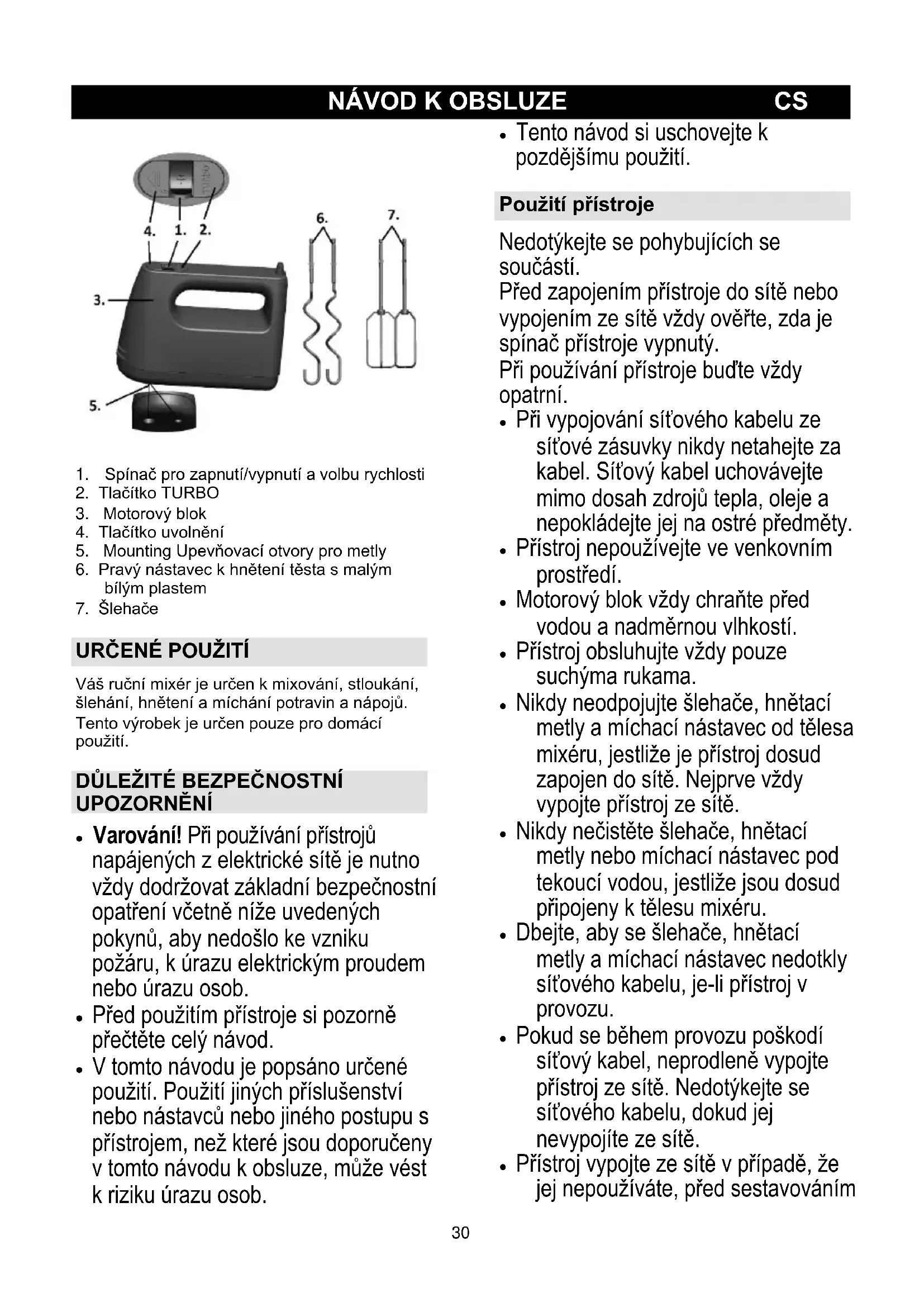 Váš ruční mixér je určen k mixování, stloukání, šlehání, hnětení a míchání potravin a nápojů. Tento výrobek je určen pouze pro domácí použití.