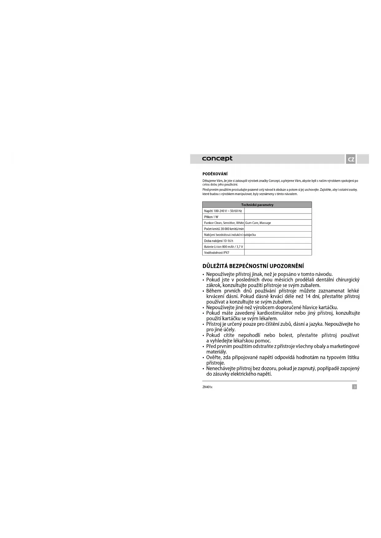 NÁVOD K OBSLUZE Perfect Smile ZK4011 Concept