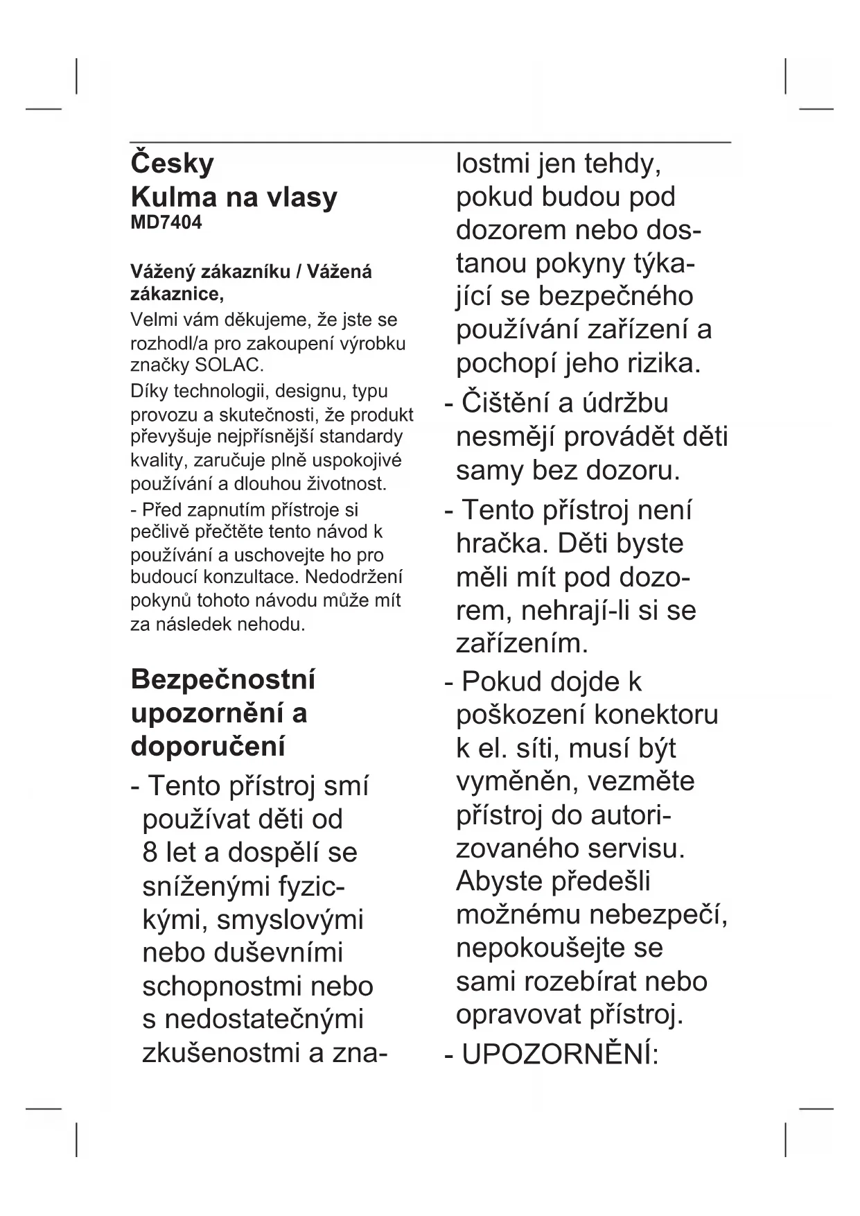 NÁVOD K OBSLUZE Tourmaline Styler MD7404 SOLAC