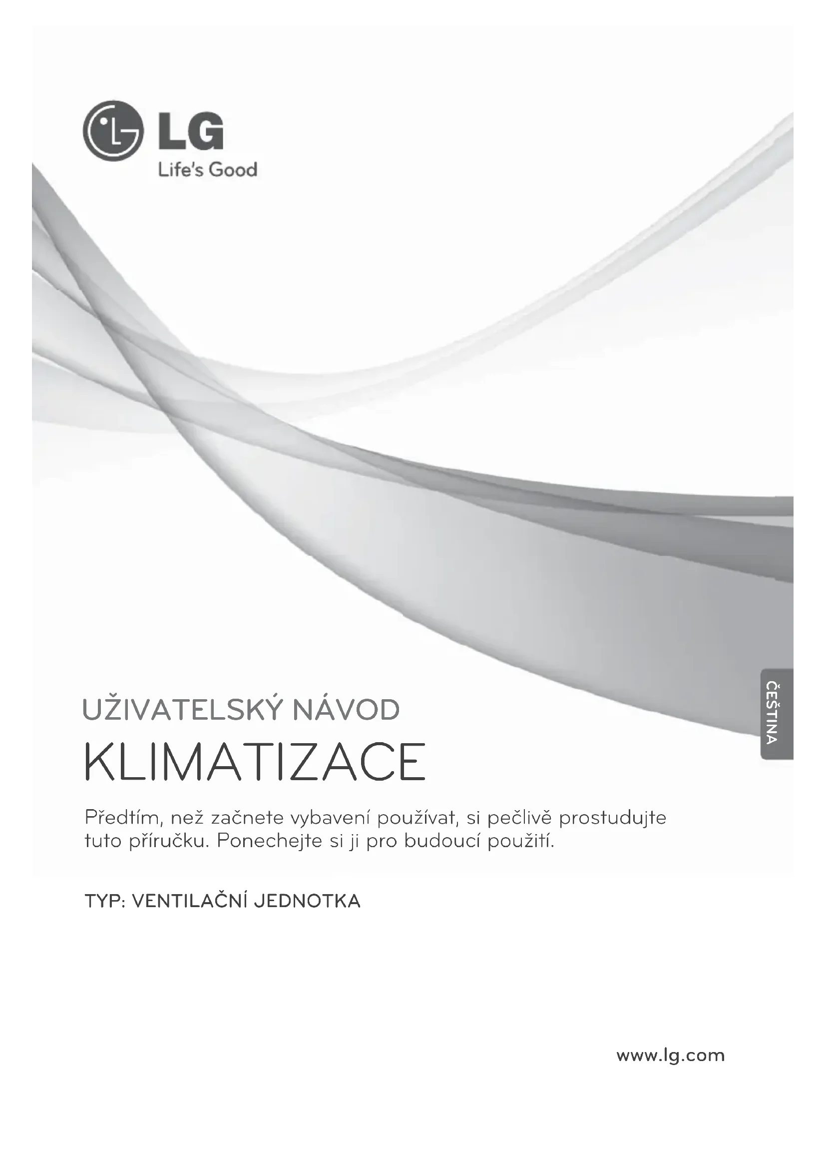 Fix the cover to the right hinge and fix it to the left side. (A nameplate is adhered toward the reading direction). VAROVÁNÍ: Při čištění nebo údržbě výrobku vypněte přívod energie. POZOR: Při údržbě používejte rukav- ice. ČEŠTINA22 Ventilační jednotka Kontrolní seznam před oznámením vady Kontrolní seznam před oznámením vady Výrobek nefunguje Výrobek nepracuje i přes stisk- nutí tlačítka „ON“ (Zapnuto)h you press the 'ON' switch I přes změnu otáček ventiláto- ru se nezmění provozní režim a přepne se na „Auto nebo nízký“ Není přiváděno napájení? Je vzduchový filtr a rekuperační výměník tepla značně zanesený? Je vnitřní teplota nižší než - 10 °C nebo vyšší než 45 °C? Je vnitřní teplota nižší než - 10 °C nebo vyšší než 45 °C? Elektrické napájení Postupujte podle způsobu čiš- tění a výměny. To je pohotovostní režim pro ochranu rekuperačního výmě- níku tepla. To je provozní režim pro ochra- nu rekuperačního výměníku tepla. Příznak Kontrolní seznam ProtiopatřeníHANDLEIDING AIR CONDITIONER Lees deze handleiding zorgvuldig door voordat u de set gaat bedienen en bewaar de handleiding voor later gebruik. www.lg.com TYPE : VENTILATOR NEDERLANDS2 Ventilator Handleiding INHOUD BELANGRIJKE GEGEVENS Noteer hier de naam en de nummers van het model en de serie:Model nr.Serie nr.Deze gegevens staan op een label aan de zijkant vanelk apparaat.Naam van de dealerDatum van aankoopn Niet uw ontvangstbewijs en/of de aankoopnota opdeze pagina vast voor het geval u deze in verbandmet een aanspraak op garantie moet overleggen.