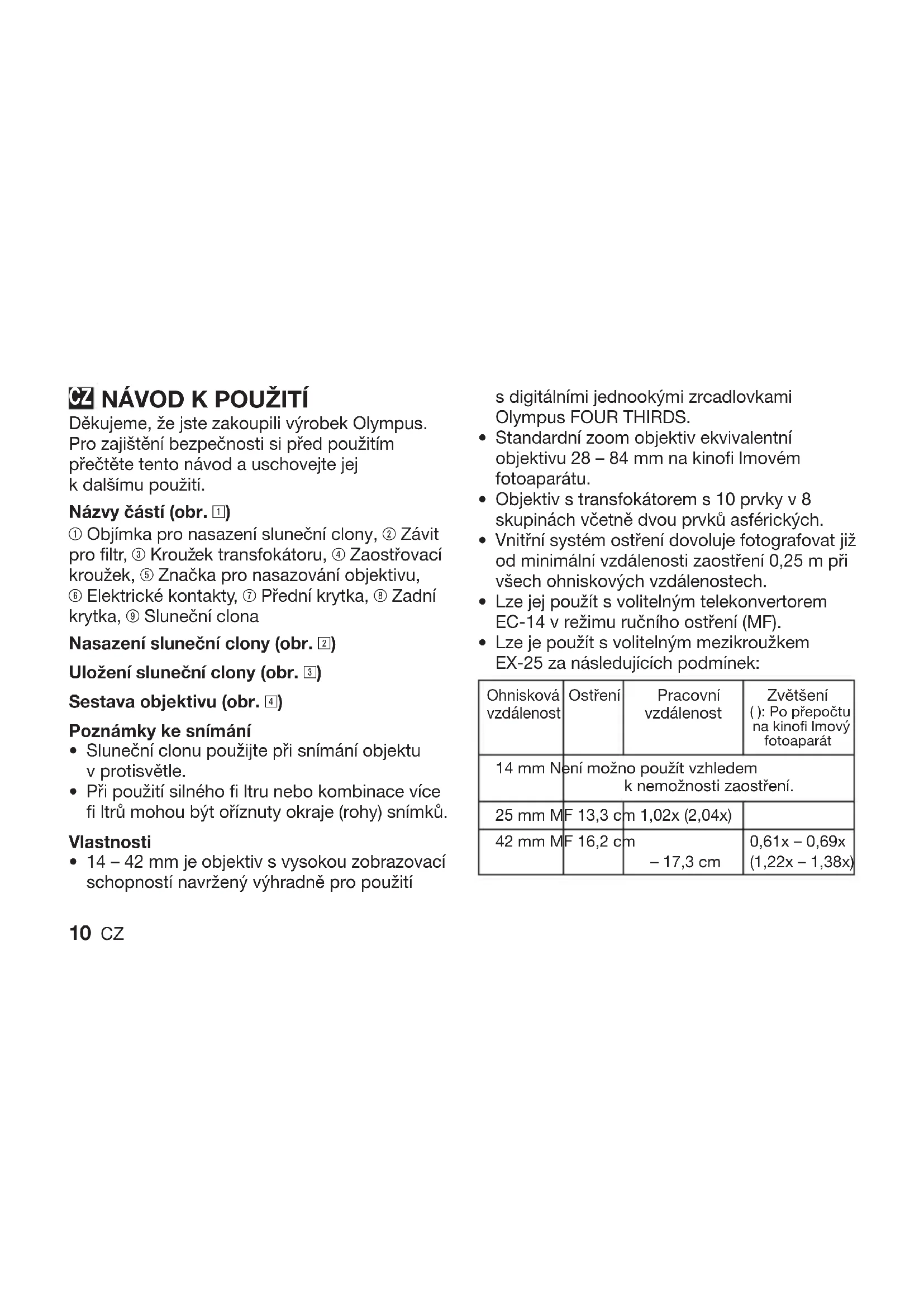 NÁVOD K OBSLUZE ZUIKO DIGITAL ED 1442mm 1:3.55.6 OLYMPUS