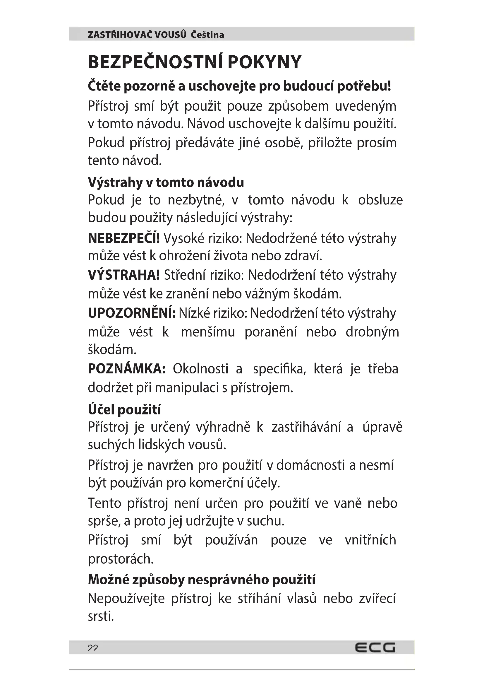 ZH 1321 - Zastřihovač vousů ECG - Bezplatný návod k obsluze