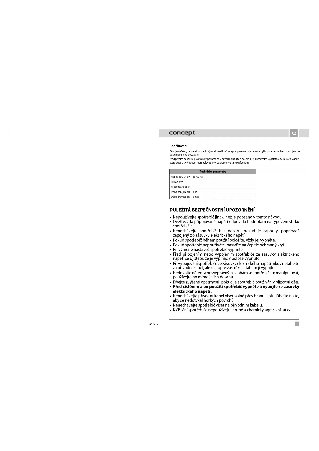 NÁVOD K OBSLUZE ZA7040 Concept