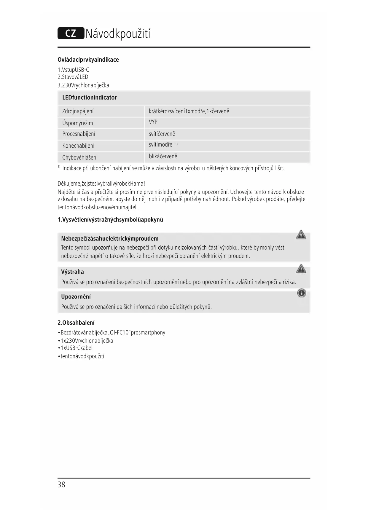 Indikace při ukončení nabíjení se může v závislosti na výrobci u některých koncových přístrojů lišit. Děkujeme, že jste si vybrali výrobek Hama! Najděte si čas a přečtěte si prosím nejprve následující pokyny a upozornění. Uchovejte tento návod k obsluze v dosahu na bezpečném, abyste do něj mohli v případě potřeby nahlédnout. Pokud výrobek prodáte, předejte tento návod k obsluze novému majiteli.