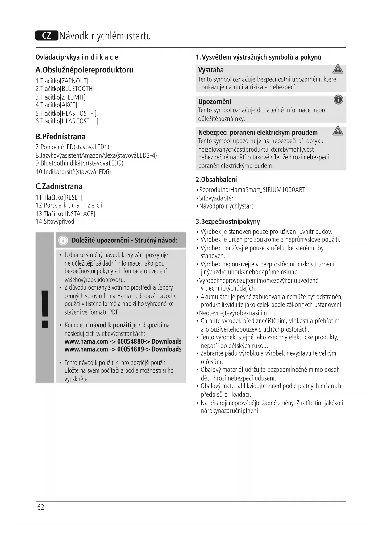 - Návod prorychlý start 3.Bezpečnostní pokyny