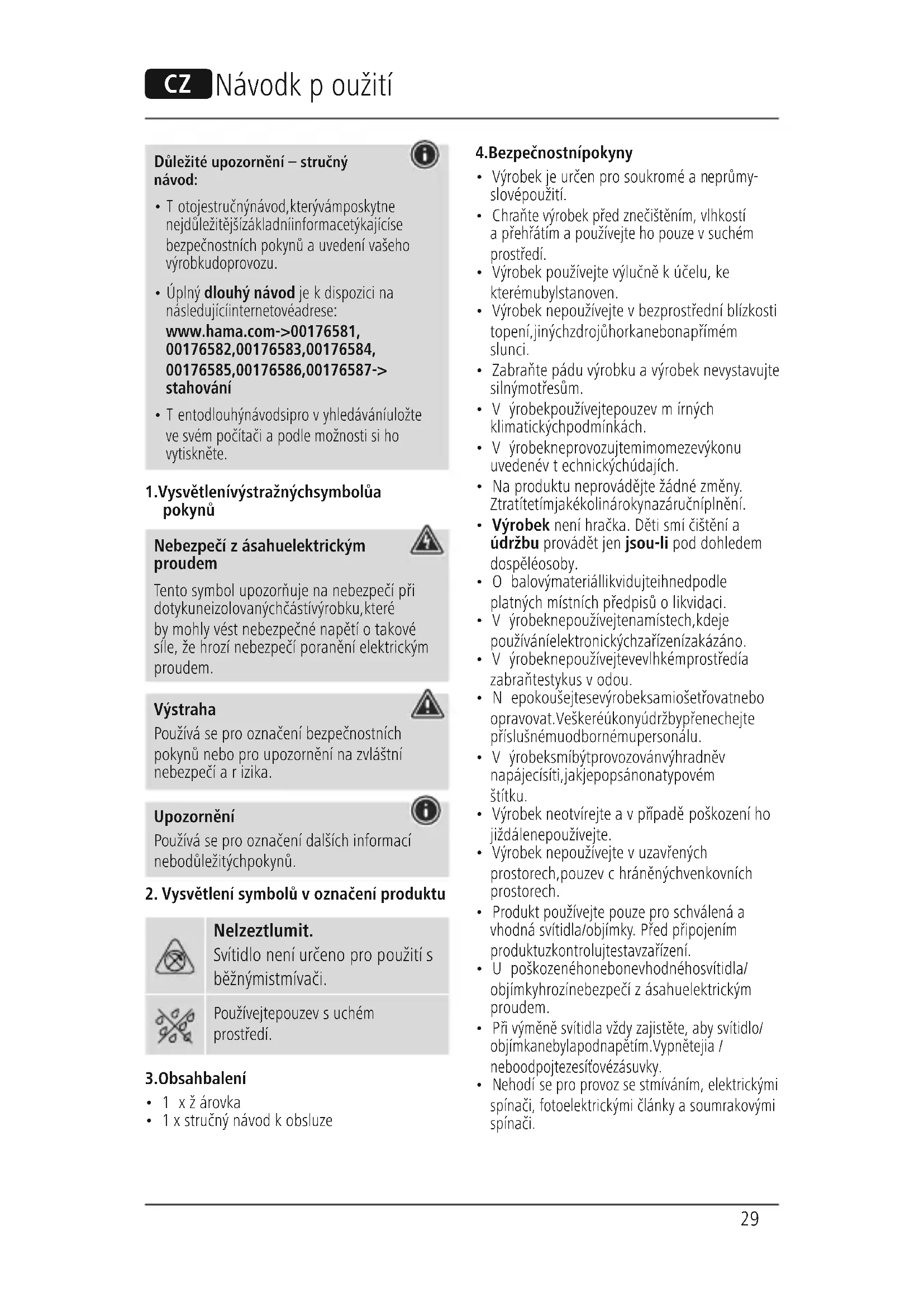 00176581 - Osvětlení HAMA - Bezplatný návod k obsluze
