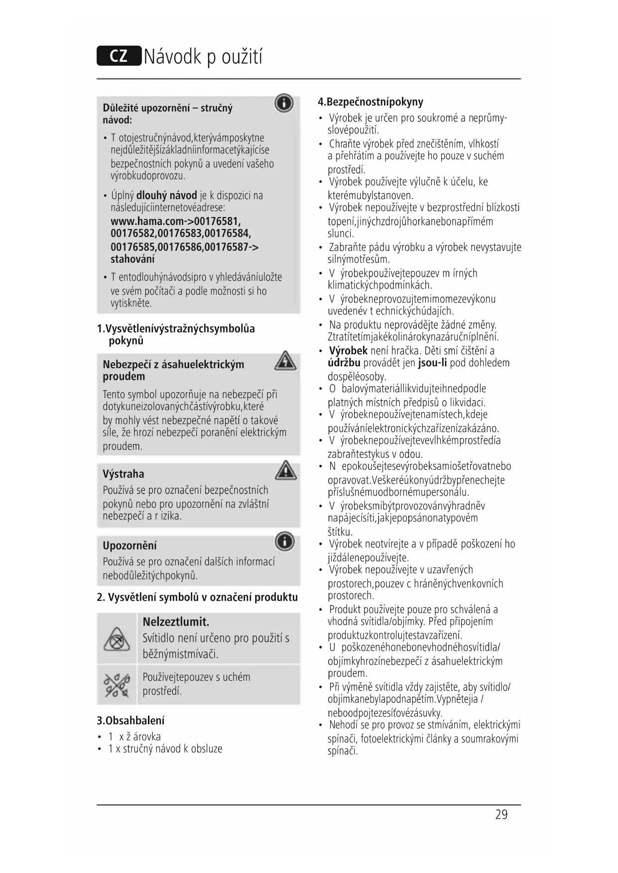 Stáhněte si návod pro váš Osvětlení ve formátu PDF zdarma! Najděte svůj návod 00176583 - HAMA a vezměte svůj elektronický přístroj zpět do rukou. Na této stránce jsou zveřejněny všechny dokumenty potřebné k používání vašeho zařízení. 00176583 značky HAMA.
