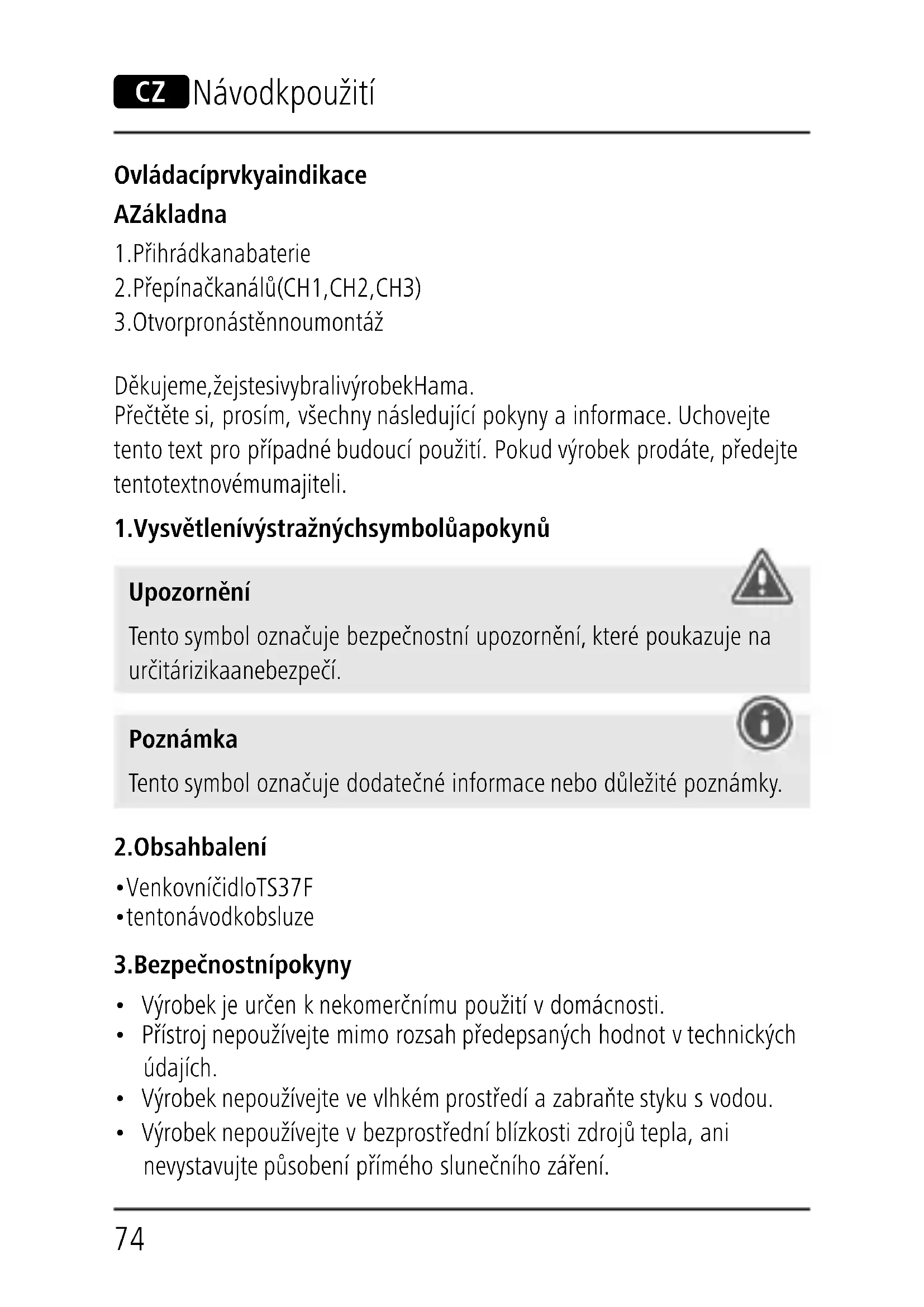 NÁVOD K OBSLUZE TS37F HAMA