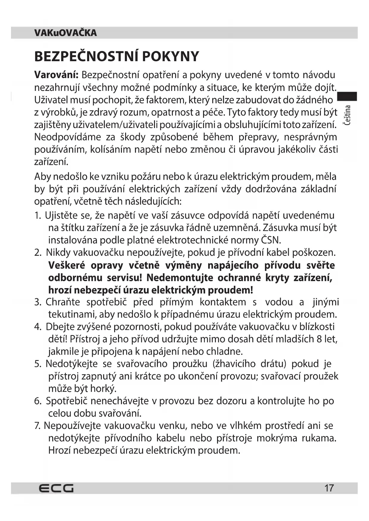 VS 110 B10 - Stroje na vakuové balení ECG - Bezplatný návod k obsluze