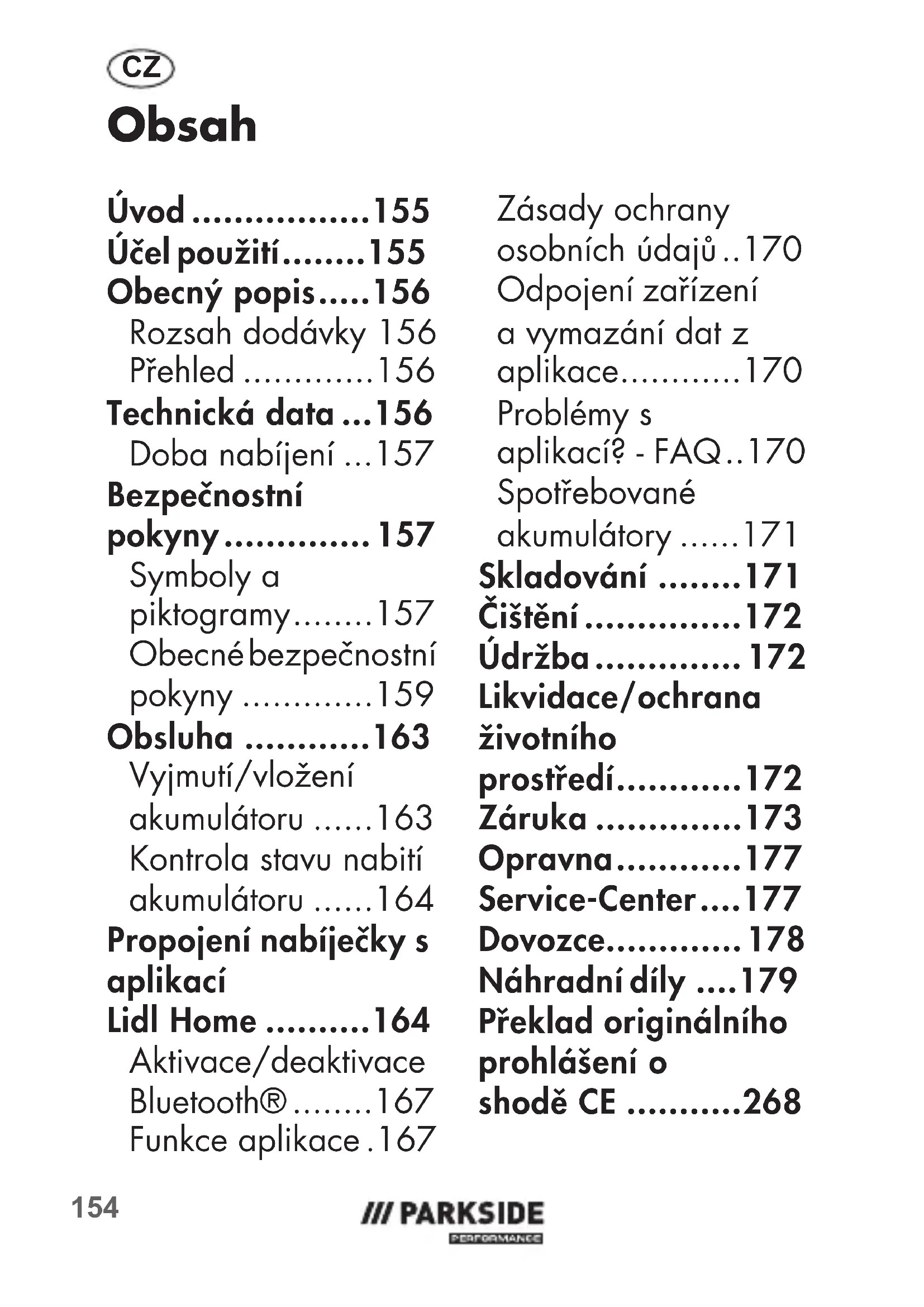 - Propojení nabíječky s aplikací Lidl Home p. 164
