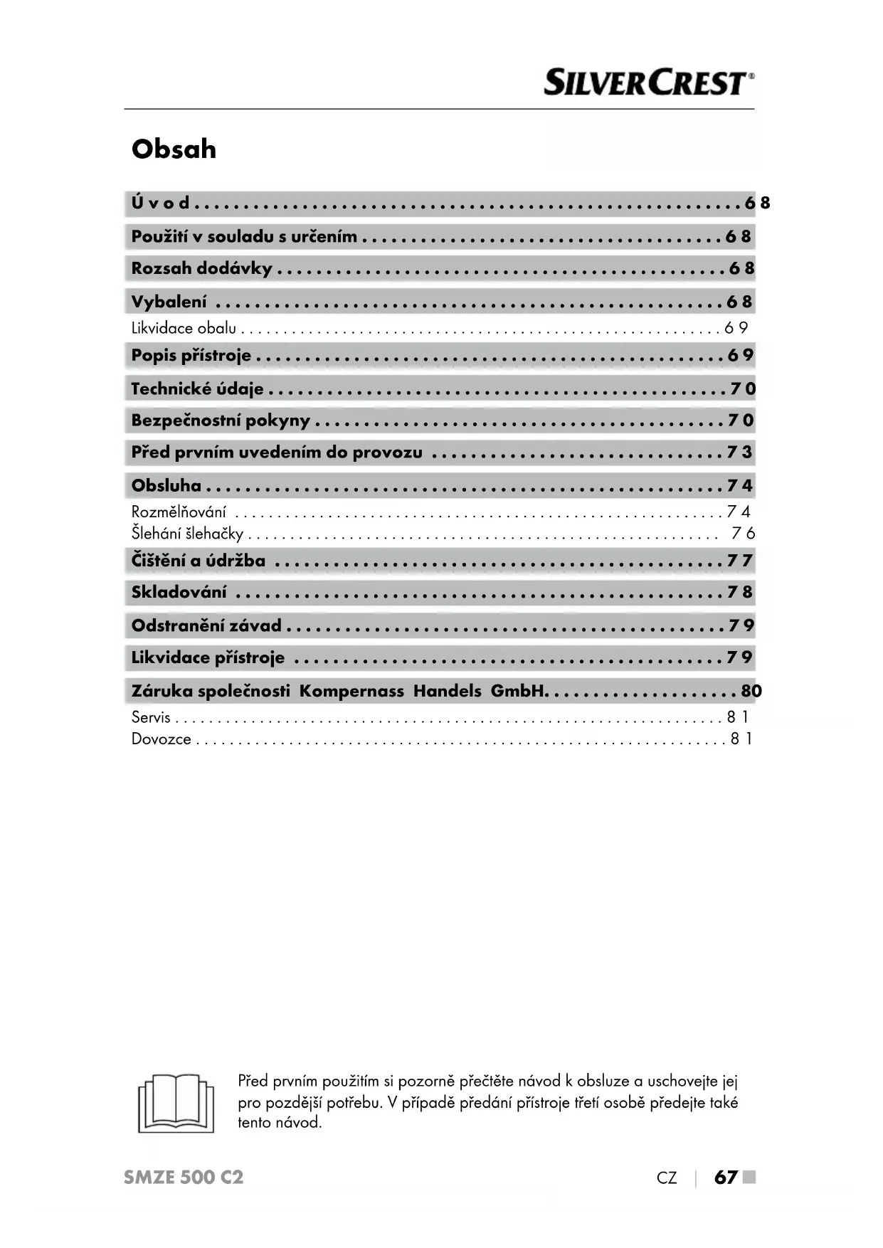 NÁVOD K OBSLUZE SMZE 500 C2 SILVERCREST