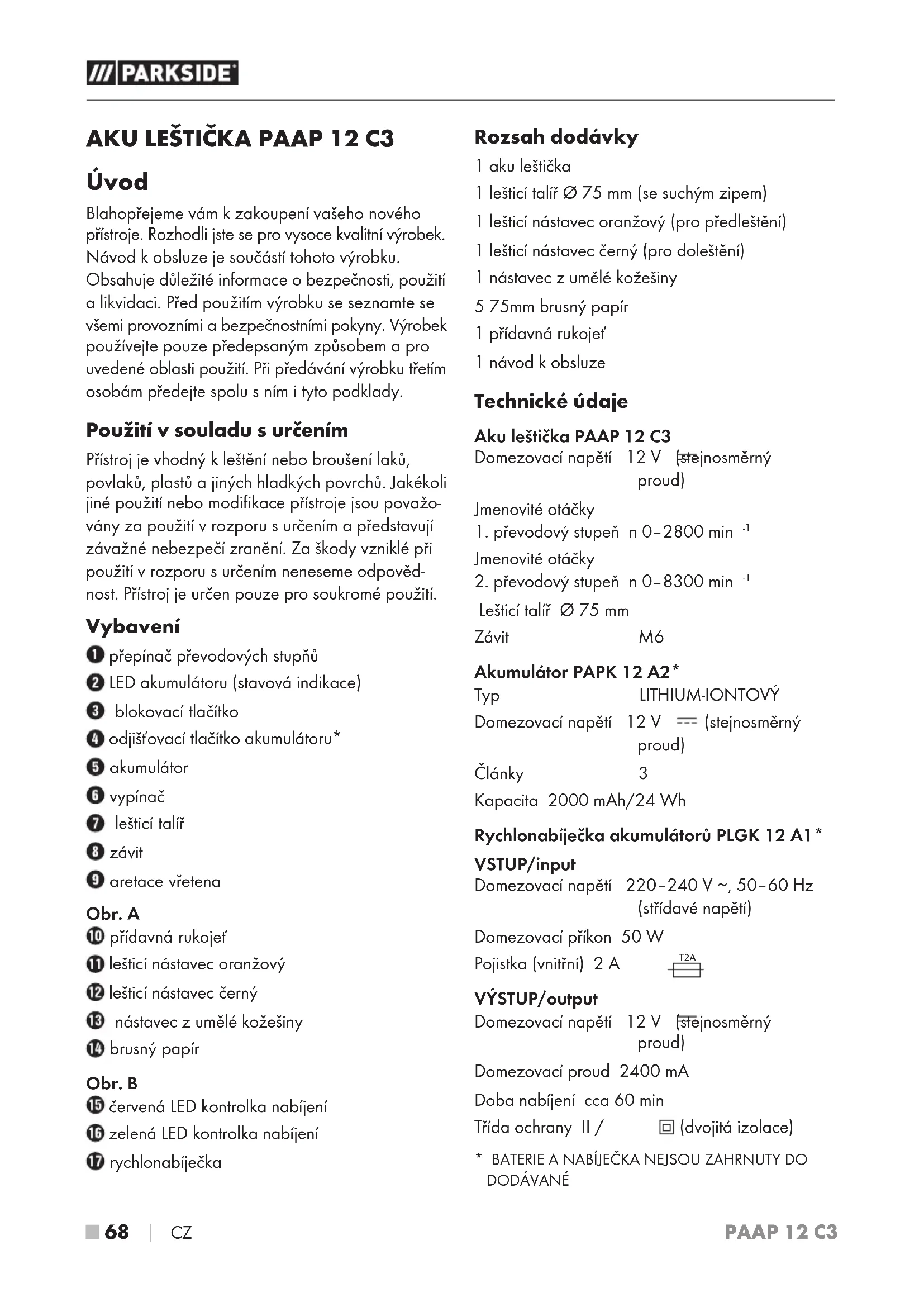 NÁVOD K OBSLUZE PAAP 12 C3 PARKSIDE