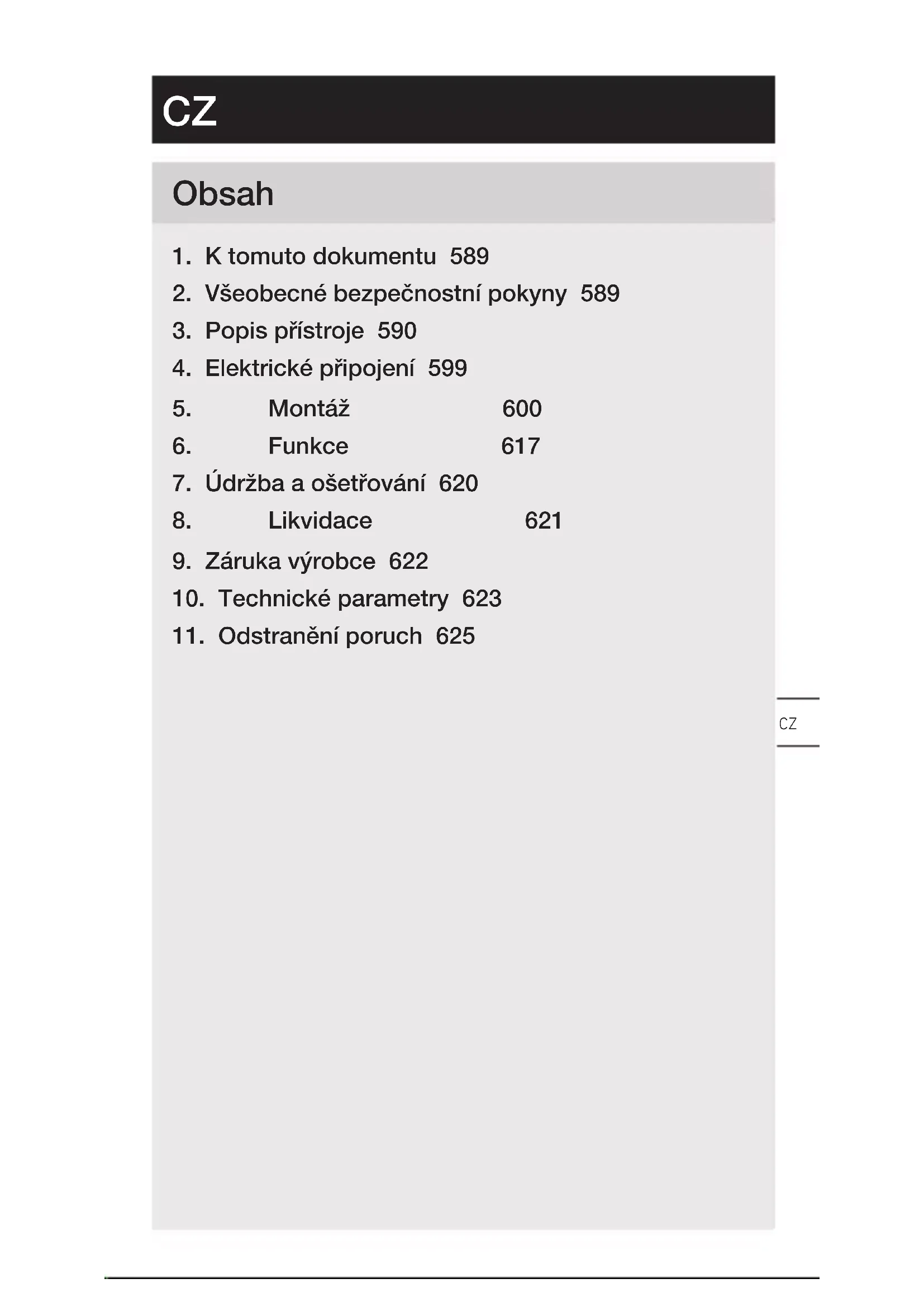 - Přístroj vyčistit mírně navlhčenou utěrkou bez čisticích prostředků. Důležité: Provozní přístroj nelze vyměnit.– 594 – Obsah