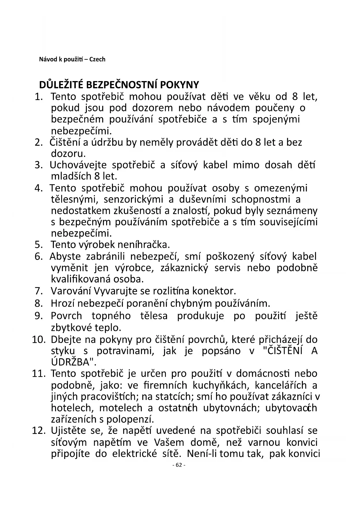 26. Tento výrobek není hračka. Děti si nesmí s konvicí hrát.