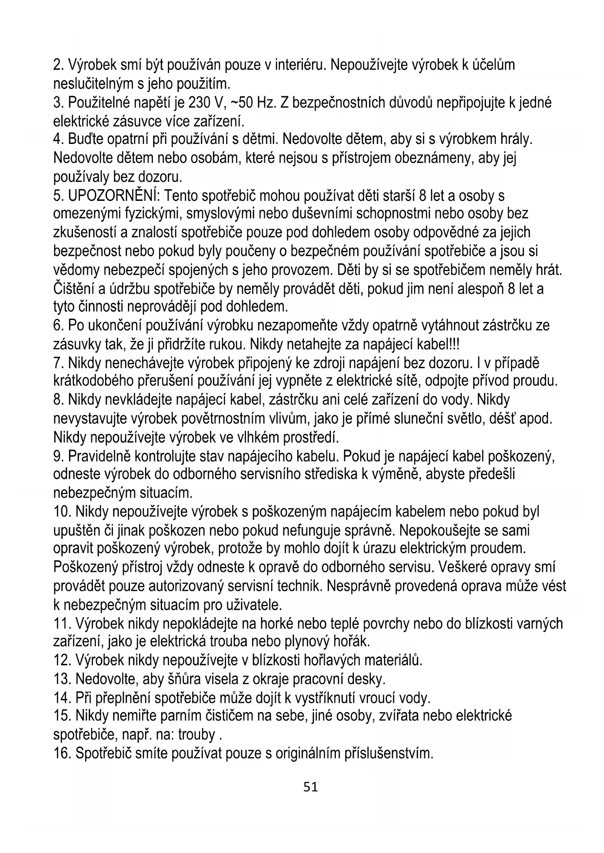 16. Spotřebič smíte používat pouze s originálním příslušenstvím.52