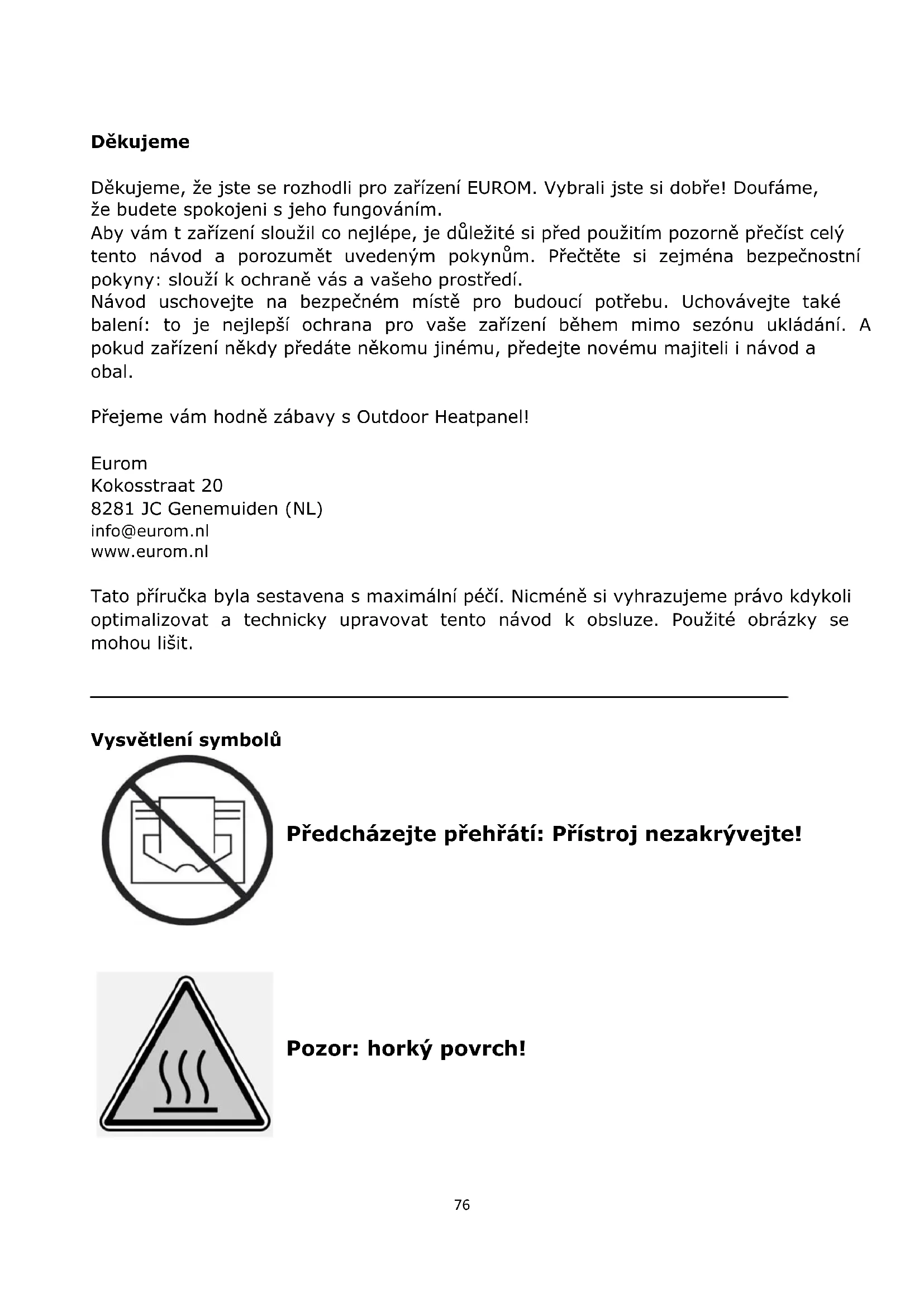 NÁVOD K OBSLUZE Outdoor Heatpanel 3200 RC Eurom