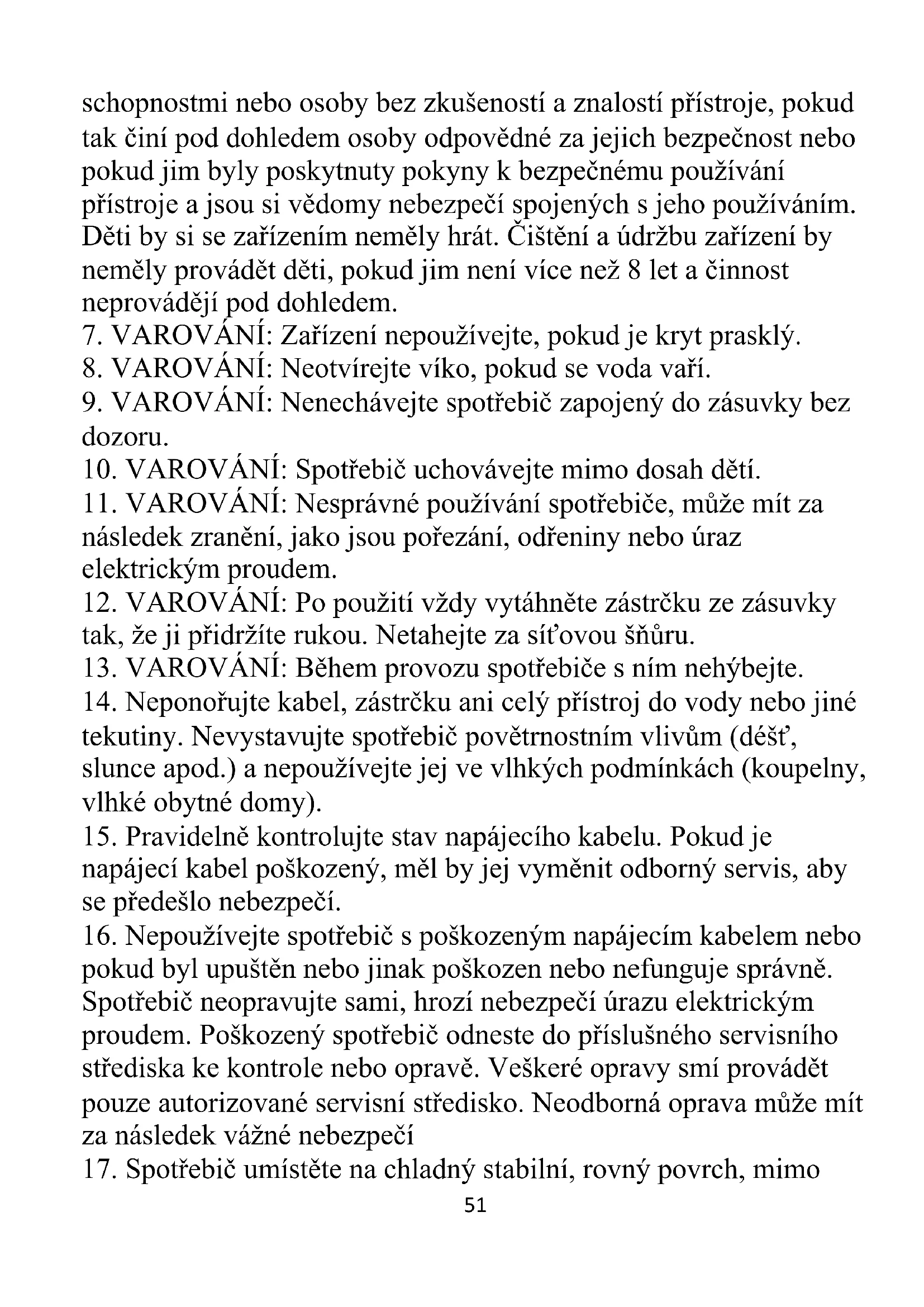 12. VAROVÁNÍ: Po použití vždy vytáhněte zástrčku ze zásuvky