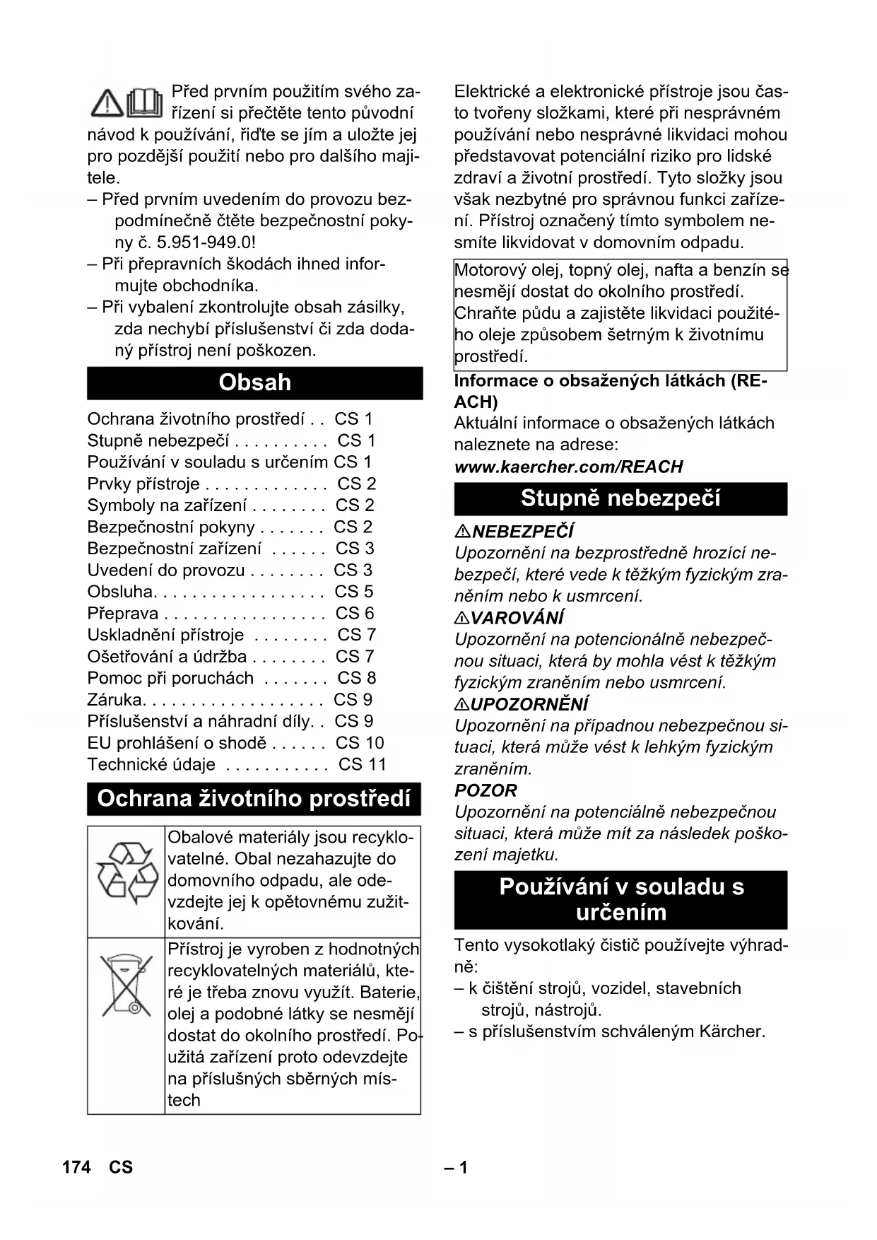 Používáni v souladu s určením CS 1