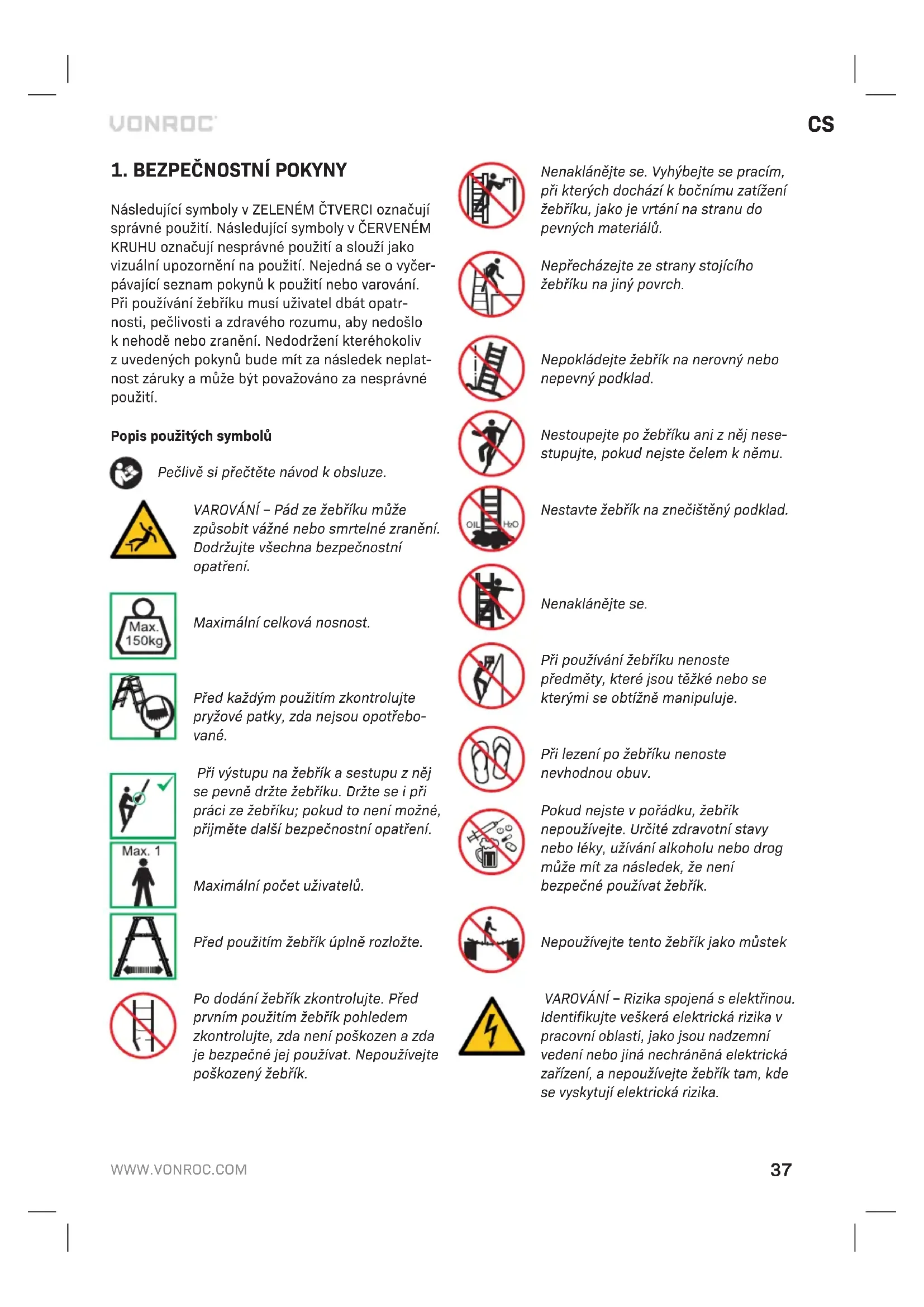 SL503XX - žebřík Vonroc - Bezplatný návod k obsluze