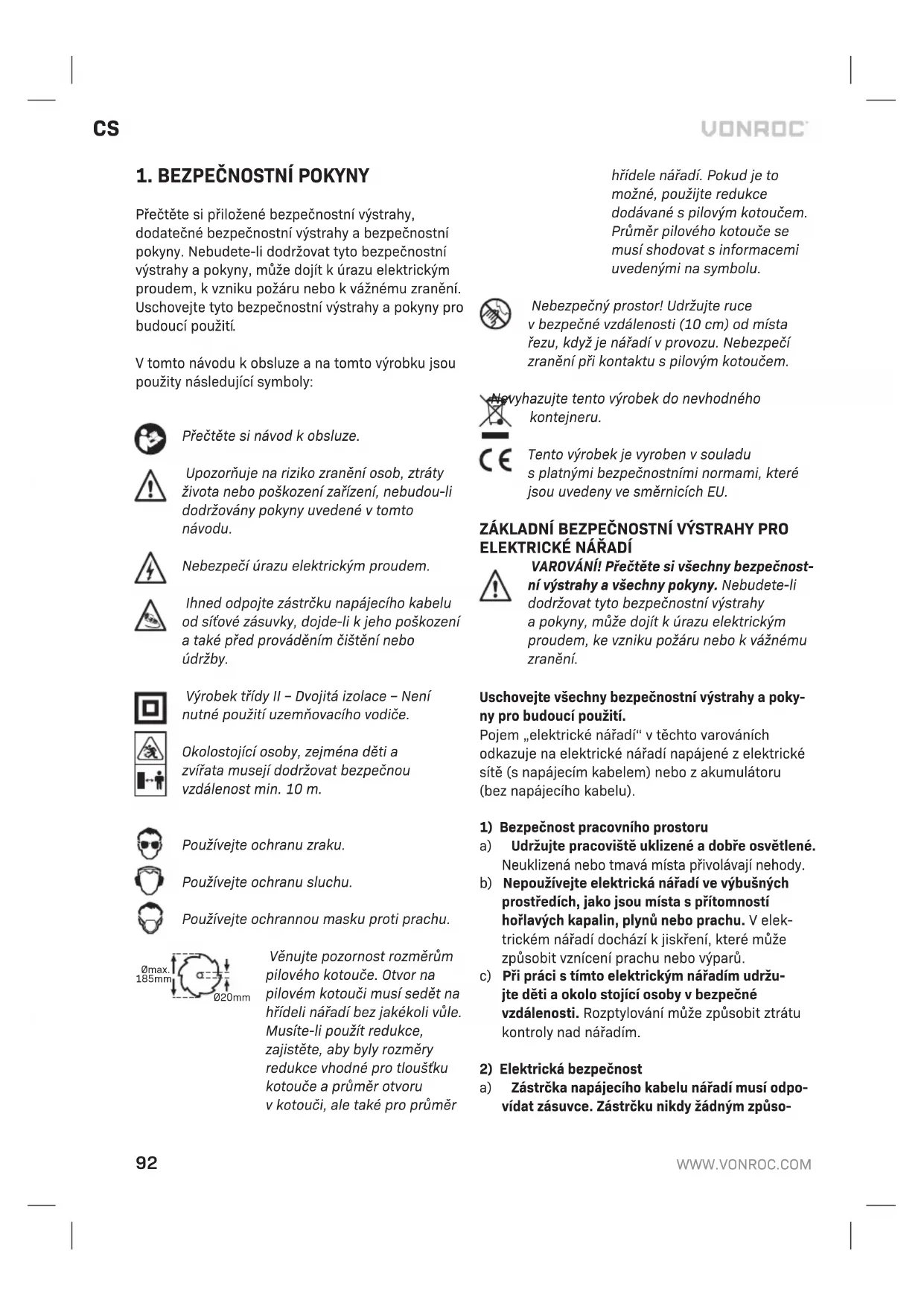 CS502AC - Pila Vonroc - Bezplatný návod k obsluze