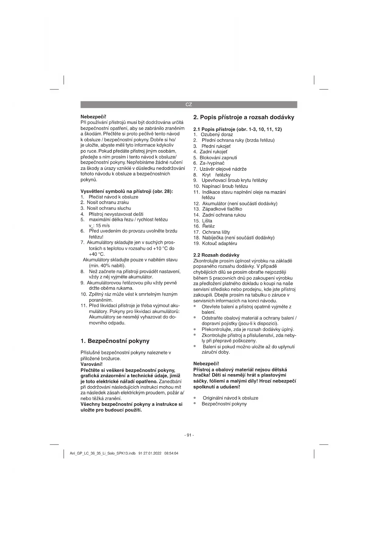 Bezpečnostní pokyny Anl_GP_LC_36_35_Li_Solo_SPK13.indb 91 27.01.2022 08:54:04CZ